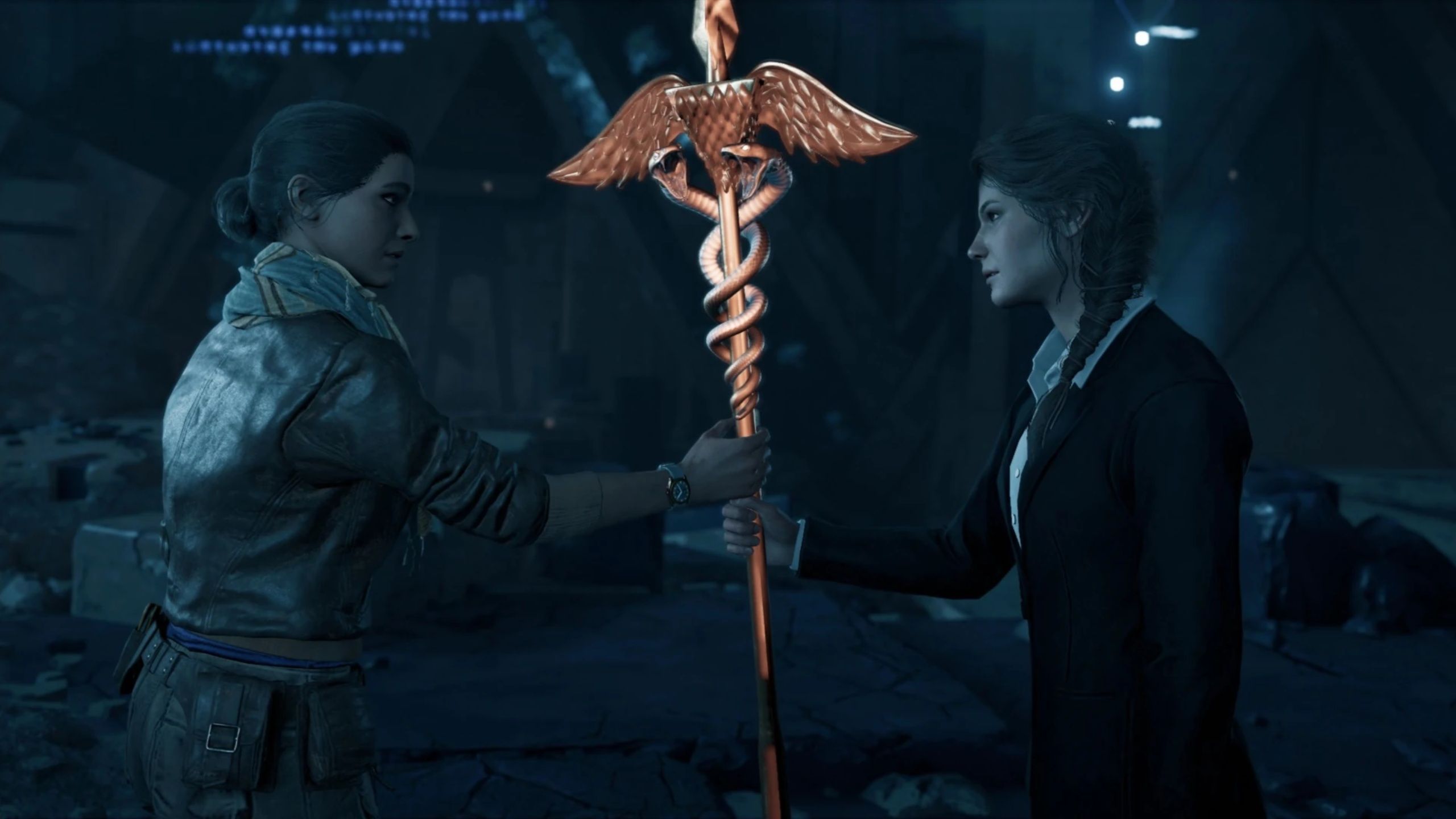 The most striking aspect of Assassin’s Creed Odyssey’s present-day story is that players see the character they controlled in the past reappear in the modern era. Whether you chose Kassandra or Alexios, you’ll find out they are a direct descendant of the Isu, the ancient civilization that created the Pieces of Eden. Once Kassandra or Alexios learns the truth about their lineage, they conceal the Staff of Hermes – another Piece of Eden – and wait for Layla to arrive. This leads to the first-ever direct exchange between a modern-day character and the assassin whose memories they’ve experienced through the Animus, as Kassandra/Alexios gives Layla the Staff.