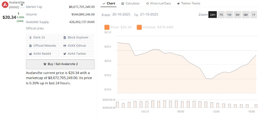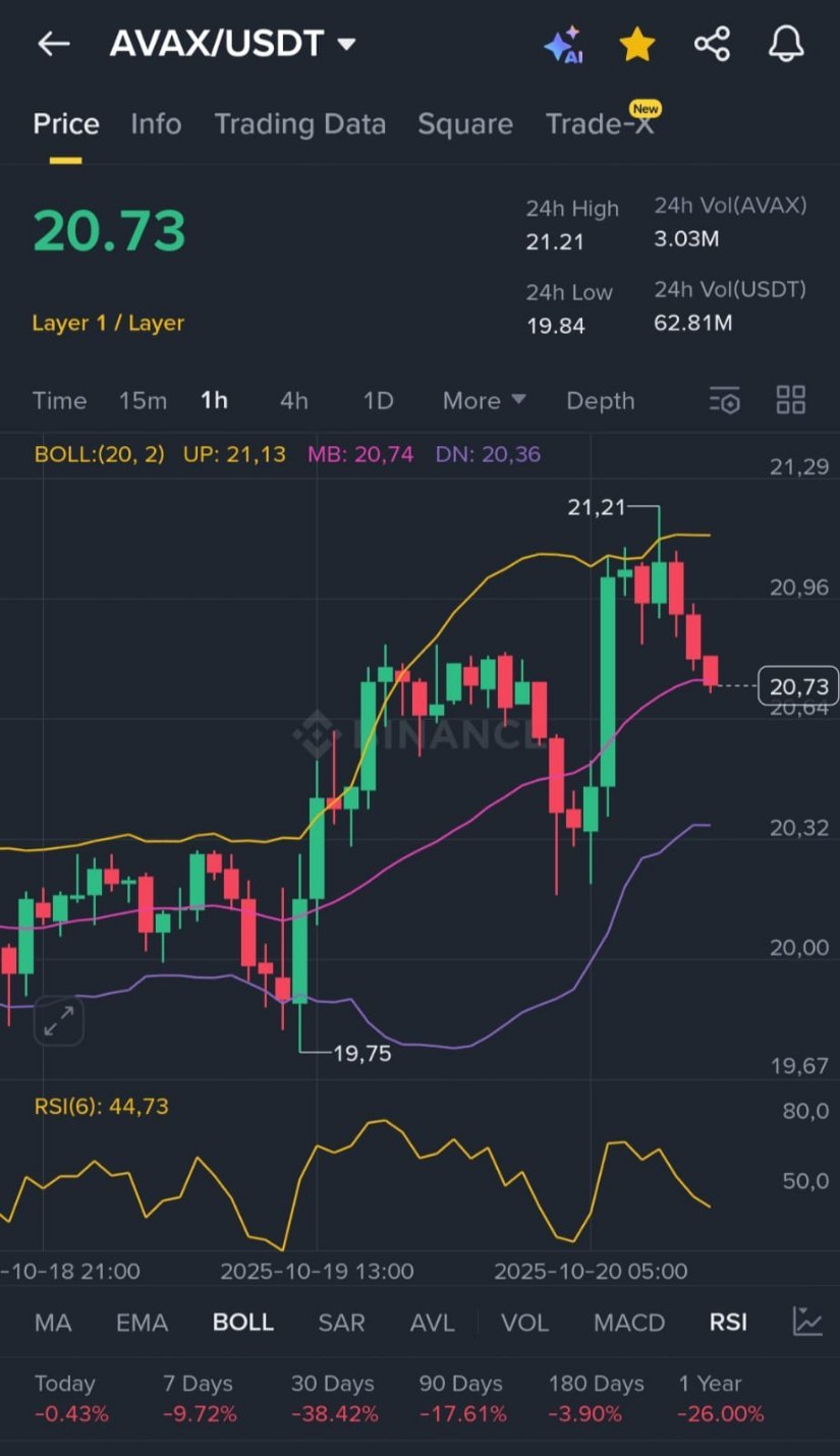 Avalanche’s sittin’ pretty, positionin’ itself for a year-end rally like a cat on a windowsill. Technicals, on-chain resets, and sentiment are all alignin’ like stars in the night sky. Low open interest, a risin’ RSI, and that trusty Q4 strength are buildin’ a foundation sturdier than a Twain novel. If $20 holds and momentum kicks above $22, AVAX could be dancin’ its way to $28 to $30, with the macro fractal hintin’ at even bigger things. For now, it’s lookin’ like AVAX is just gettin’ warmed up for its next big hoedown. 🕺💃