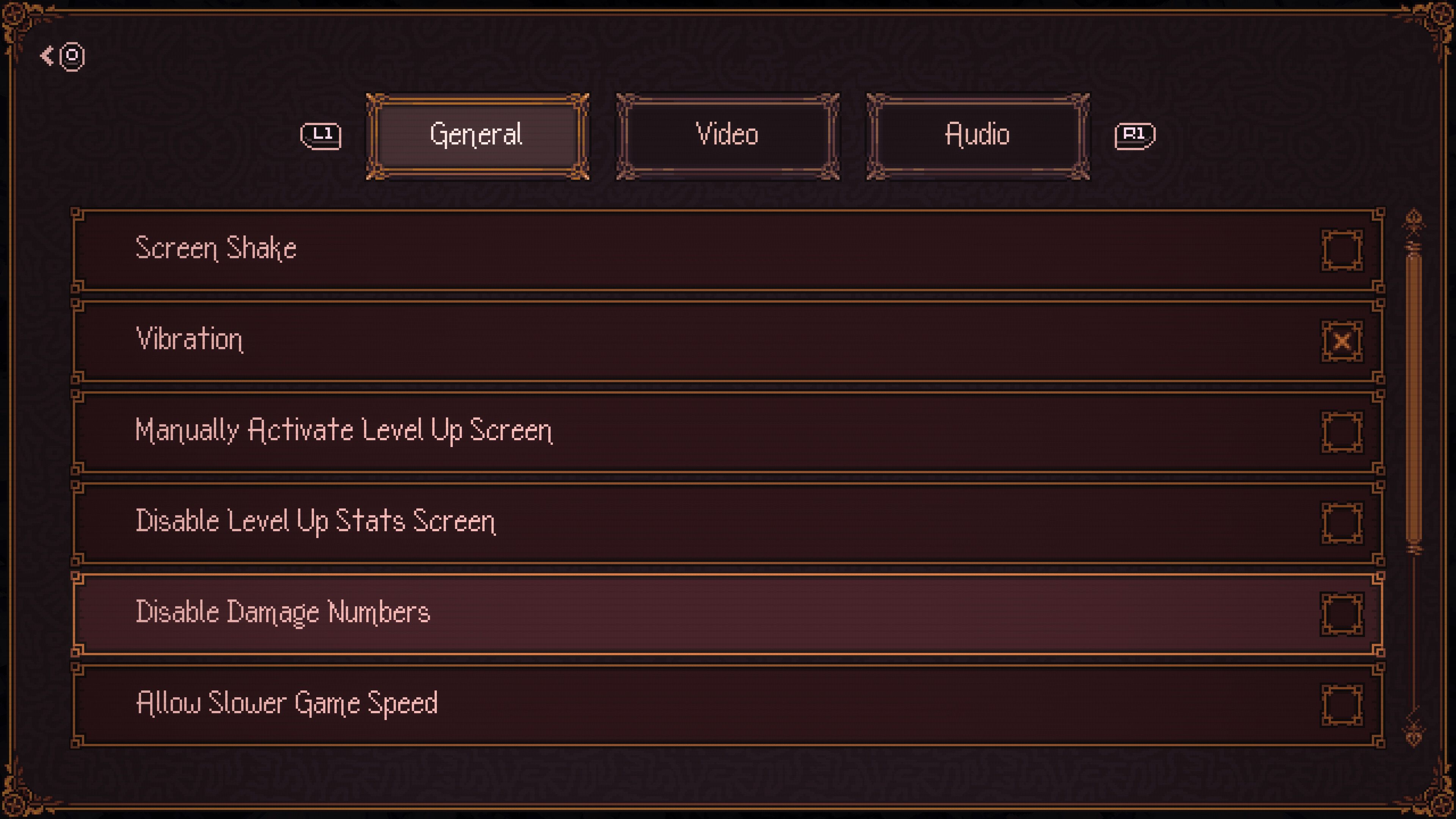 This game doesn’t offer much in the way of assistance, which is typical for a roguelike. However, there are a couple of quick settings adjustments you can make to improve your experience. First, it’s best to disable the damage numbers in the options menu for a cleaner look and smoother gameplay.
