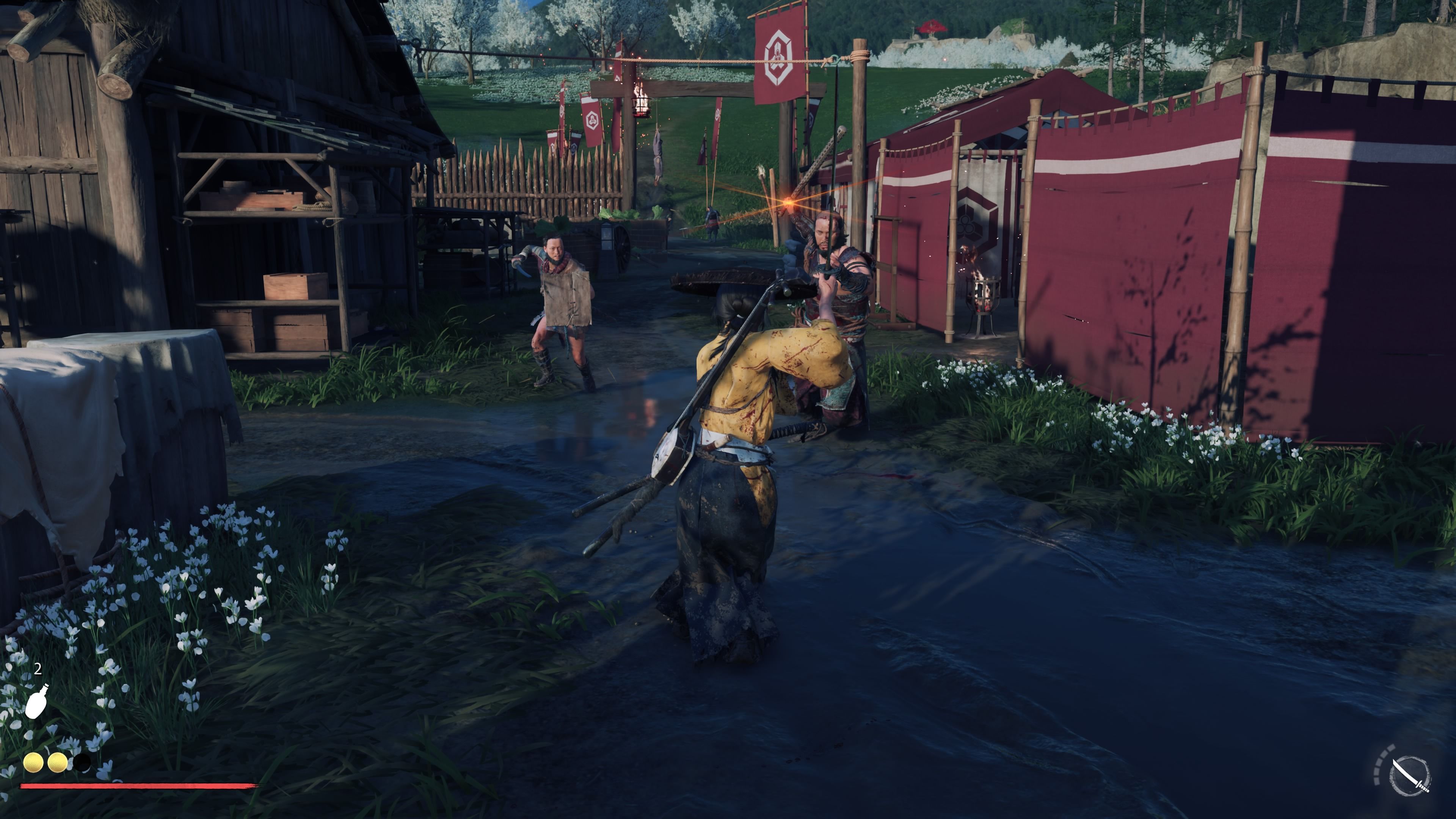 Battles in Ghost of Yotei are dynamic, enjoyable, and complex. Players can’t simply repeatedly press a button to defeat enemies. The game features a wide variety of foes, including those wielding katanas, spears, shields, bows and arrows, and large, powerful brutes. Each enemy type has unique attacks that players must learn to anticipate and counter. When an enemy prepares to attack, their weapon will flash. If there’s no flash, the attack can be blocked or parried. See the attack patterns below to understand how to respond to different colors: