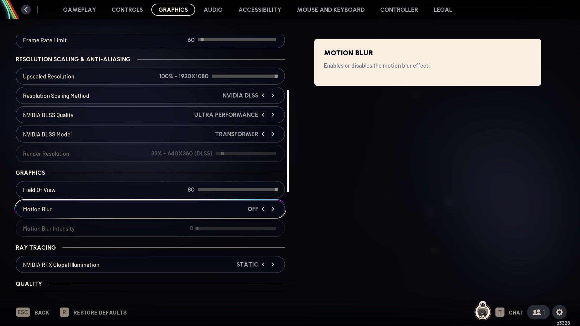 Let’s start by disabling Motion Blur. Go to your game’s Settings, then Graphics, and scroll down until you find the Motion Blur option. Turn it Off. This will improve performance and eliminate the blurry effect when you move the camera. Disabling it will give you a clearer view of your surroundings, making it easier to spot enemies.