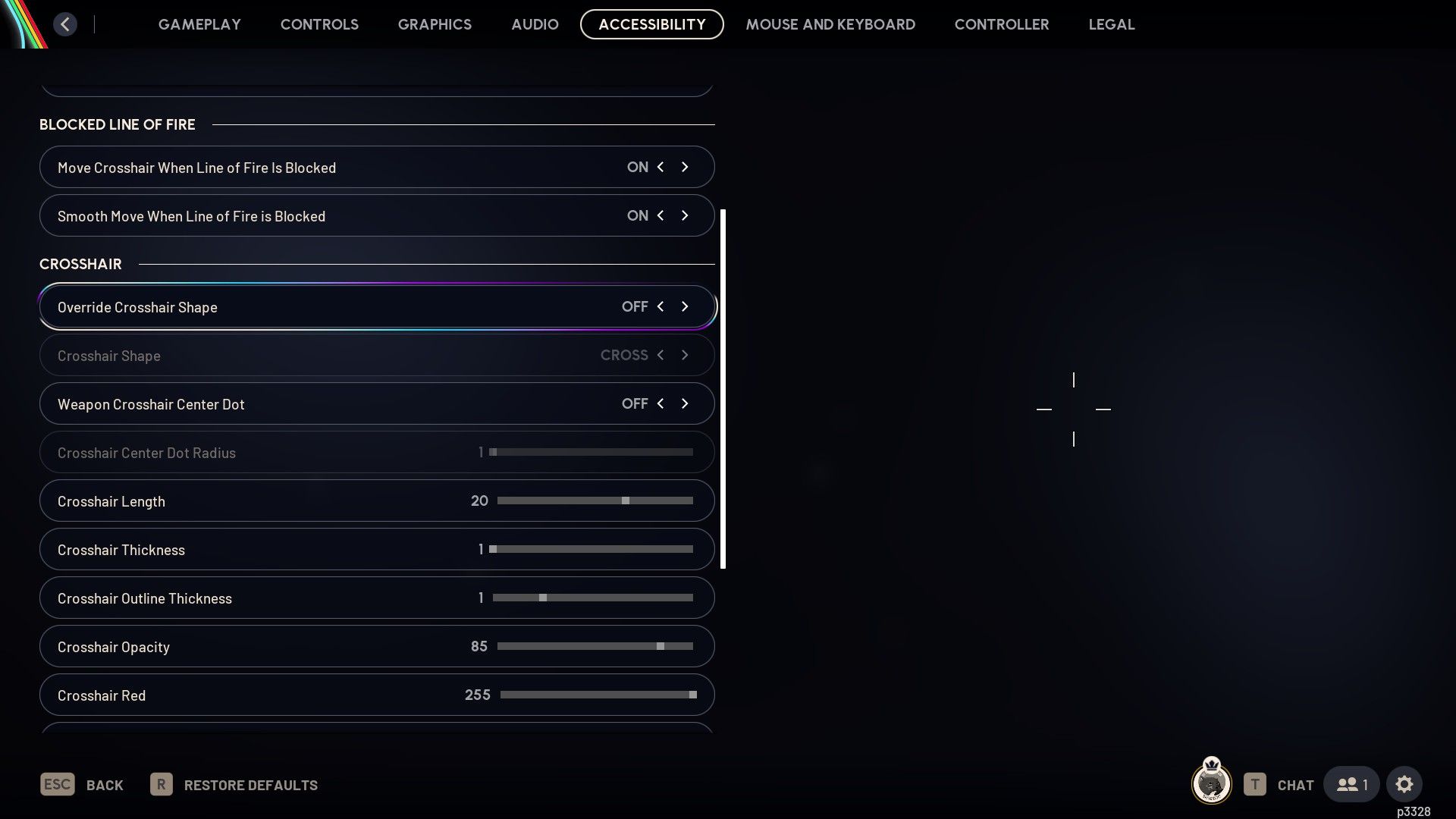 To make aiming easier, go to the Accessibility settings and find the ‘Custom Crosshair Options.’ Look for the ‘Override Crosshair Shape’ setting and try turning it off, then adjust it to your liking. We suggest using a circular or rounded diamond crosshair for more accurate aiming and to help control weapon spread.