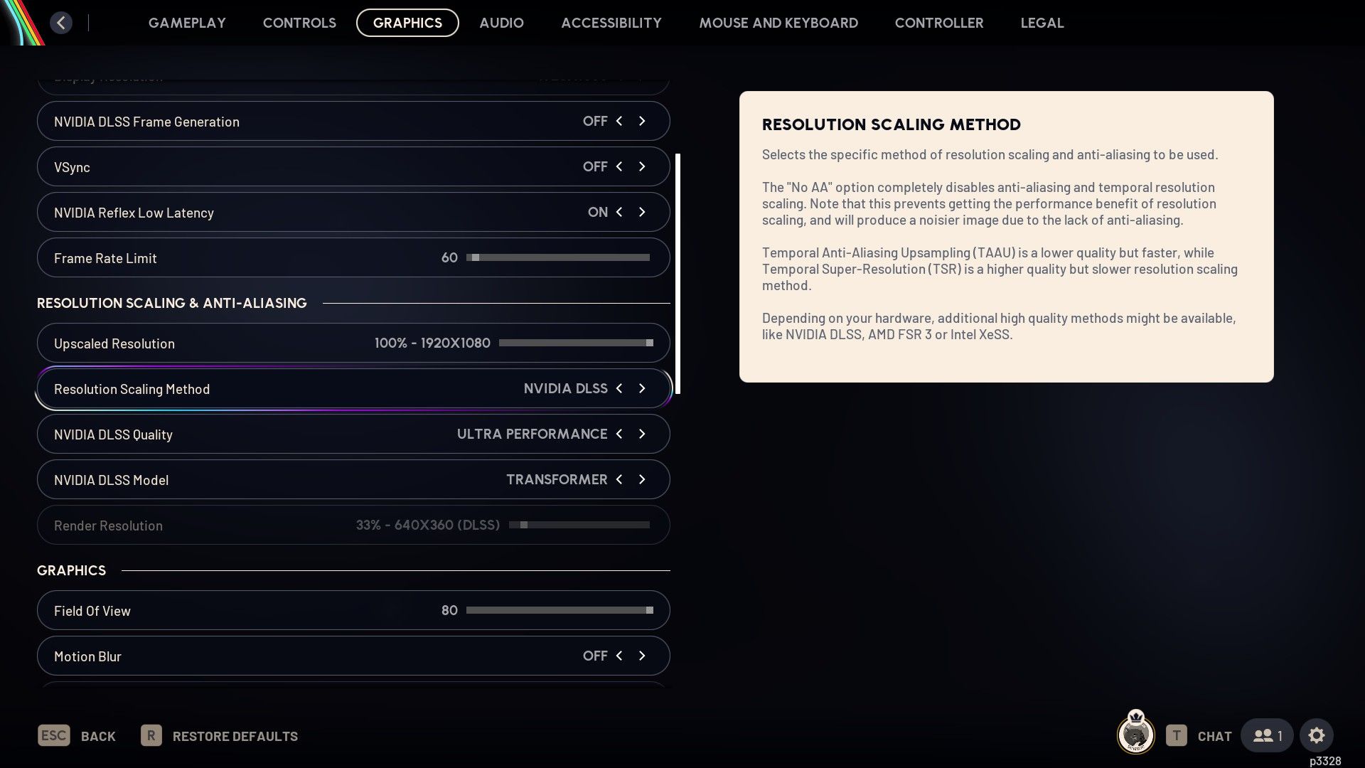 Go to the Settings tab and find the Graphics section. Then, locate the ‘Resolution Scaling Method’ option. Change ‘NVIDIA DLSS Quality’ from ‘Auto’ to ‘Quality’ and ‘NVIDIA DLSS Model’ from ‘CNN’ to ‘Transformer’.