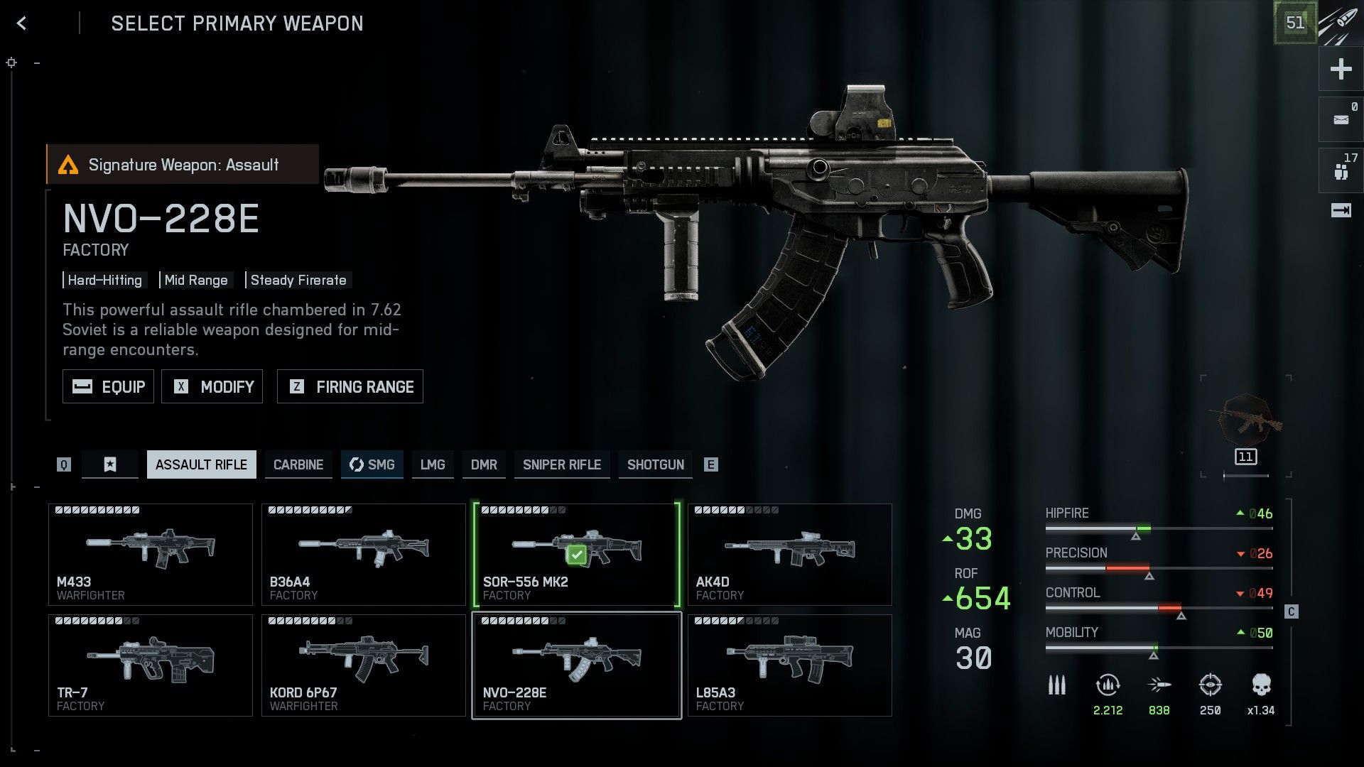 The NVO-228E is a great weapon for players who prioritize simplicity over quickly eliminating opponents. It works really well right out of the box, and with a good setup, it’s incredibly dependable. While it might lose a direct, close-quarters fight against the top two assault rifles, it can actually kill an enemy with just three body shots from up to 5 meters away – a useful tactic to remember.