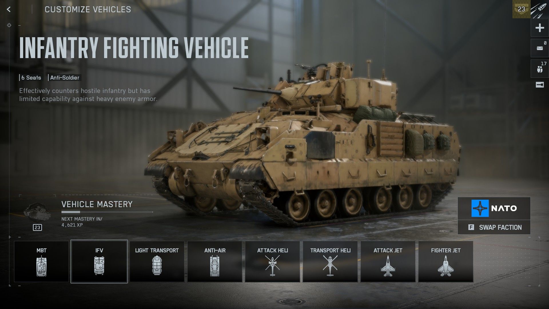 Infantry Fighting Vehicles, or IFVs, are like lighter, faster versions of tanks. They can carry weapons and serve as a place for soldiers to start a battle. While not as heavily armored as tanks, IFVs are quicker and more agile, making them good for surprising the enemy with quick attacks and then moving to a new location.