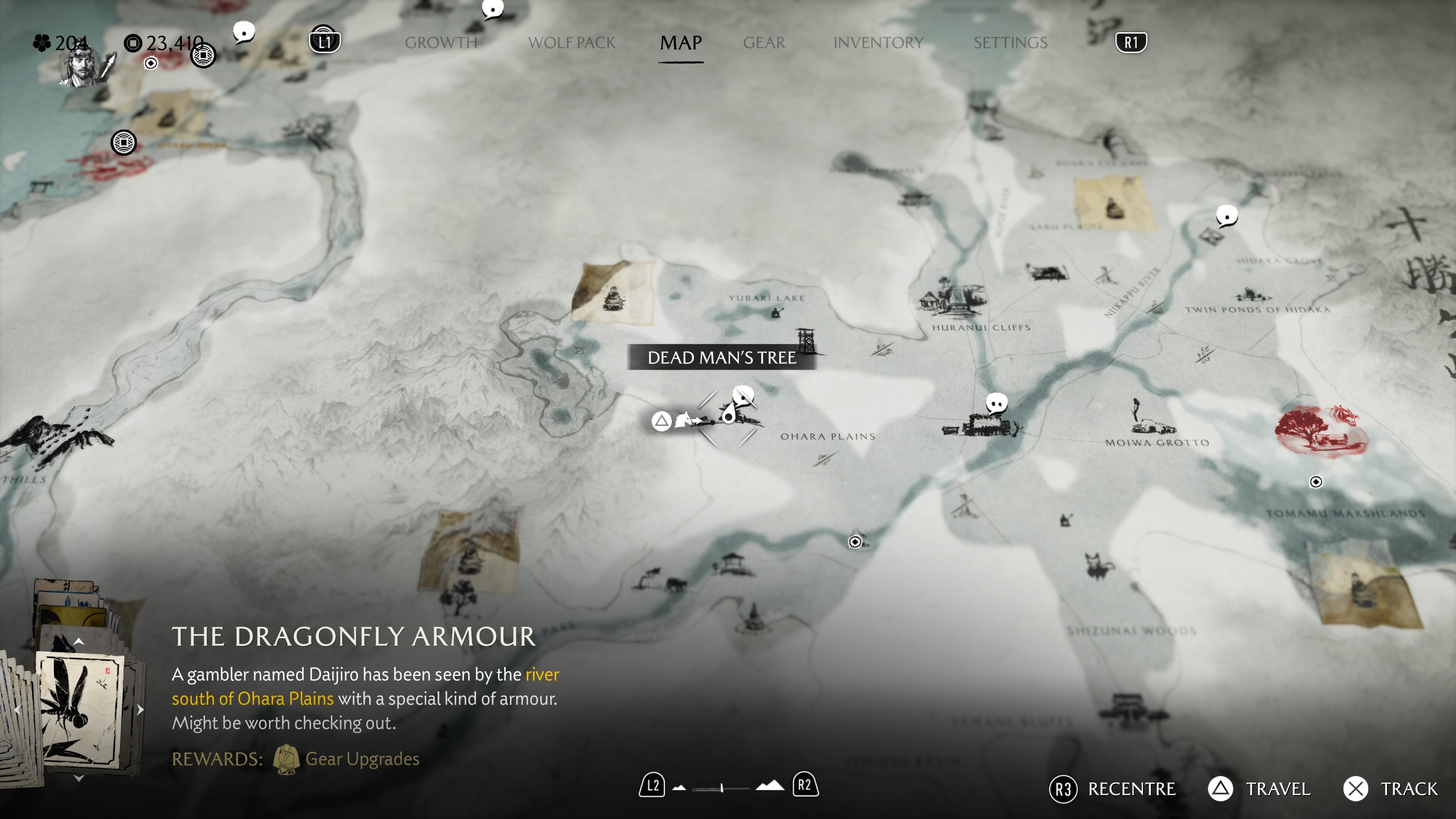 - How to Get: Found at the base of an old tree in the Shikotsu Woods, near to the lake and tree stump just west of The Old Stables in the Yotei Grasslands. Only unlocks during and after the “Old Trails” Side Tale.