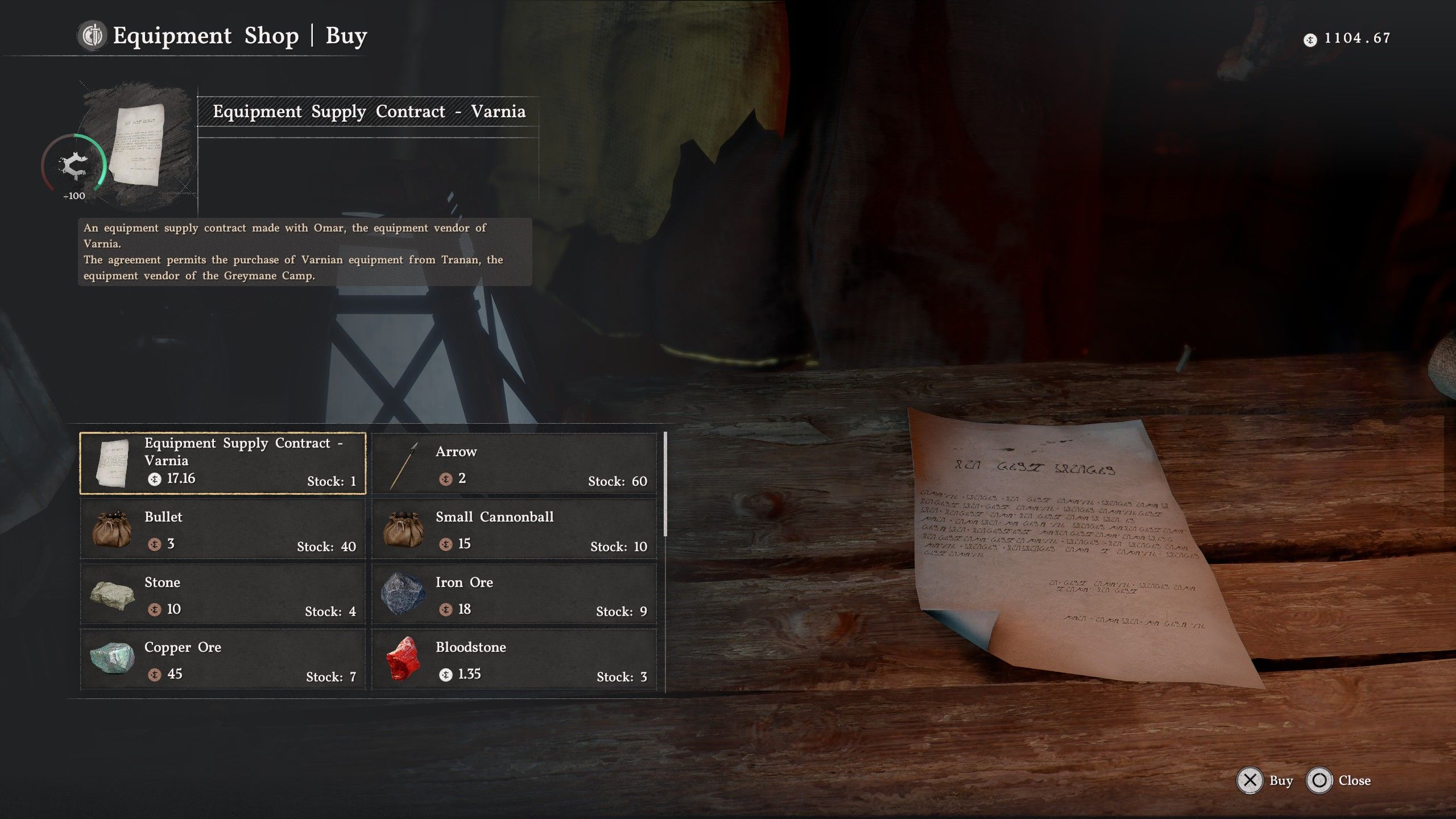 • To get the second Varnia Sword, gift x10 Hides to gain +100 Trust with the Equipment Shop to purchase “Equipment Supply Contract – Varnia”,