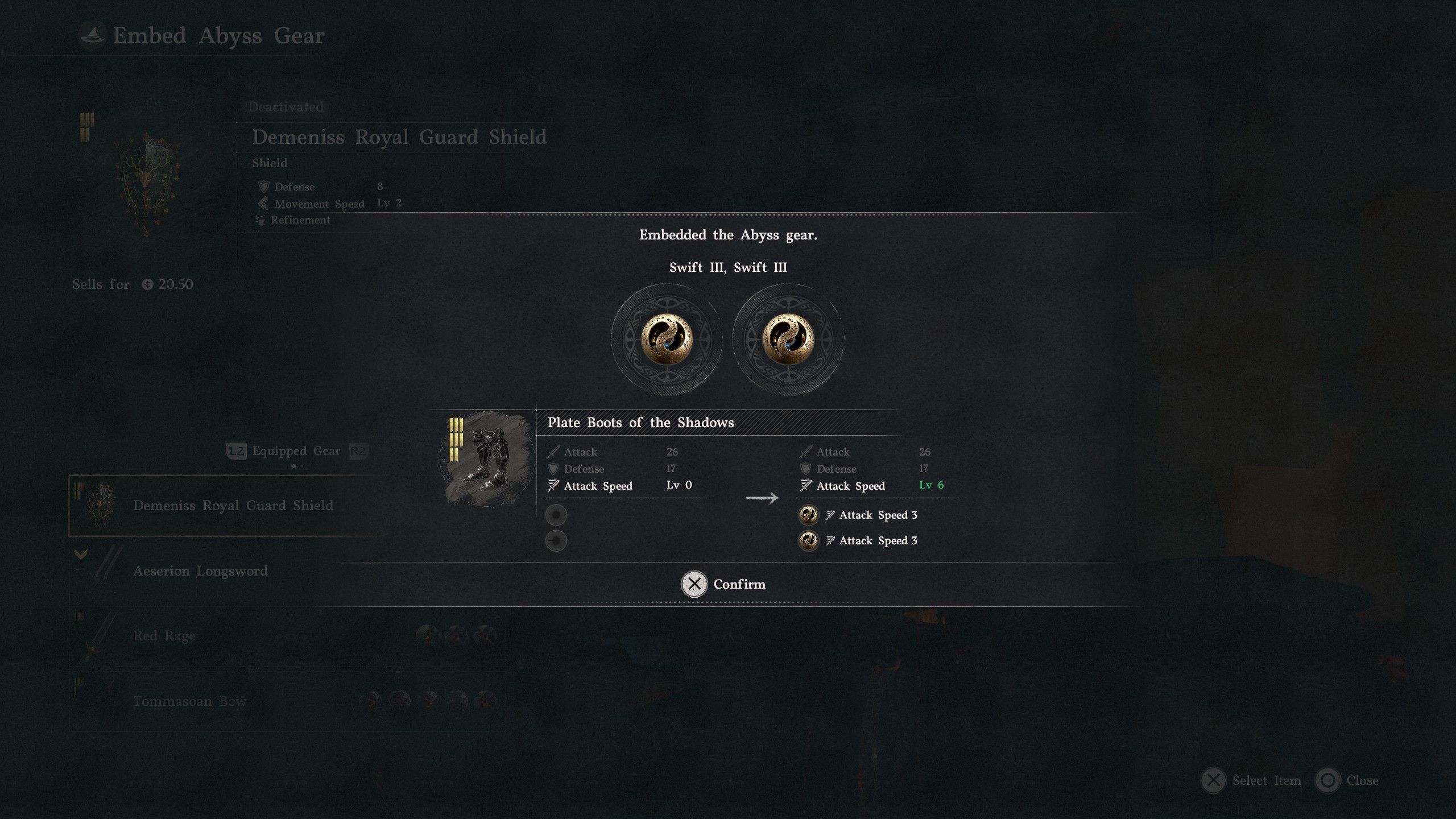 • Swift III x2 will increase your Attack Speed by +6, which means you’re going to be able to switch from Turning Slash to Heavy Attacks far quicker, and deal immense damage, especially when using Relentless, which increases damage with consecutive attacks.