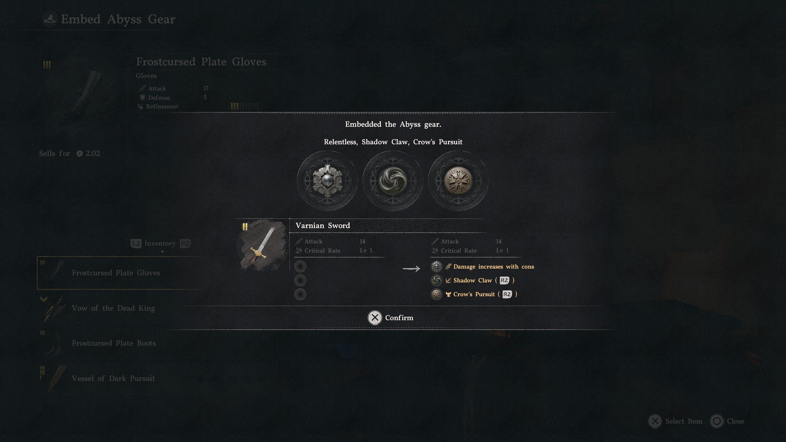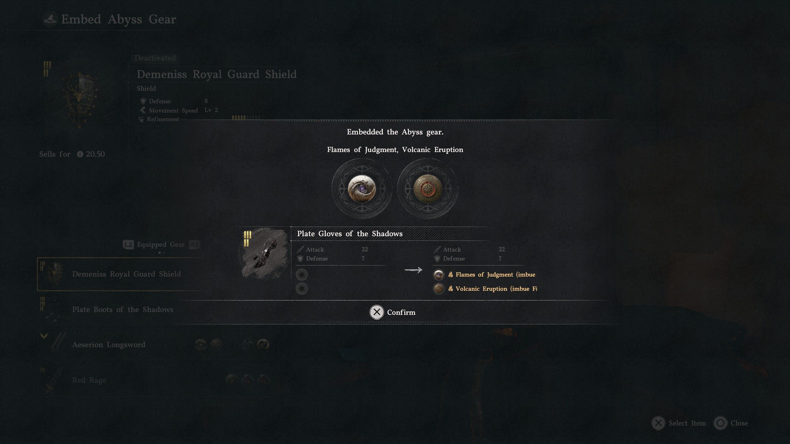 We’ve left out Shield and Cloak Abyss Gears because cloaks can’t equip Abyss Gears, and this build uses a second one-handed weapon instead of a shield.