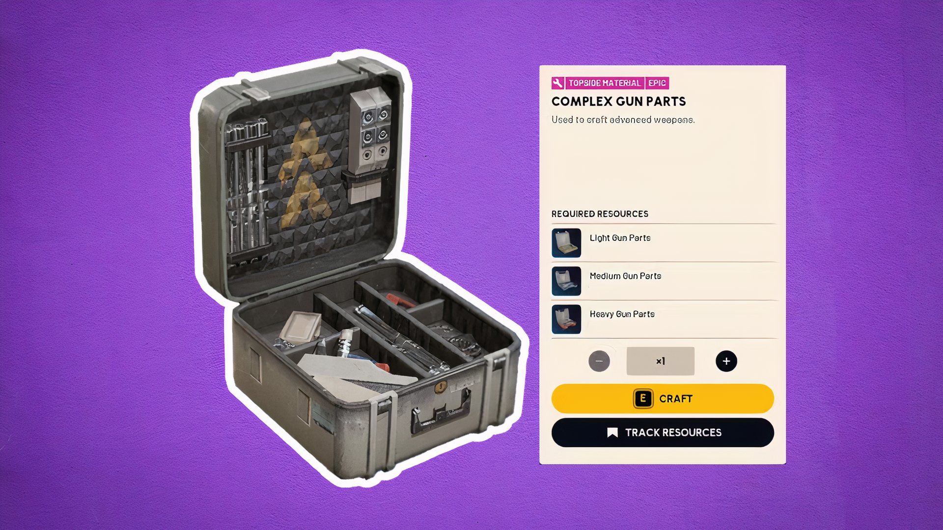 You can find the blueprint for Complex Gun Parts on maps such as Stella Montis. Once you have it, you can build them at the Workshop, but you’ll need to upgrade your Refiner to level three first.