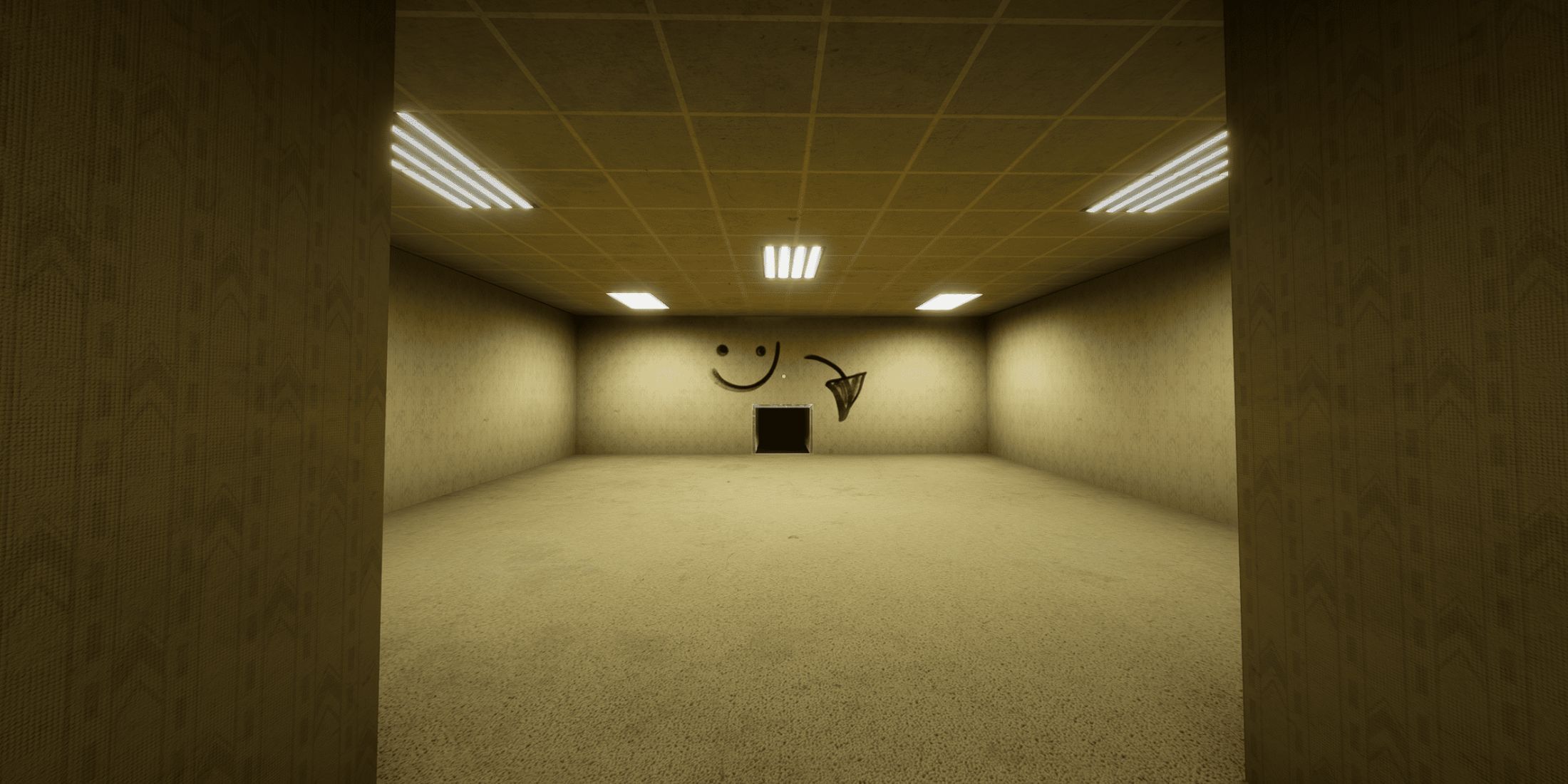 Escape the Backrooms takes place in eerily familiar, yellow-carpeted hallways filled with dim lights and unsettling static. The game focuses entirely on escaping a seemingly endless maze – each exit simply leads to a more challenging level. It perfectly captures the unsettling atmosphere of an abandoned, forgotten office building, with stained walls and a feeling of emptiness.