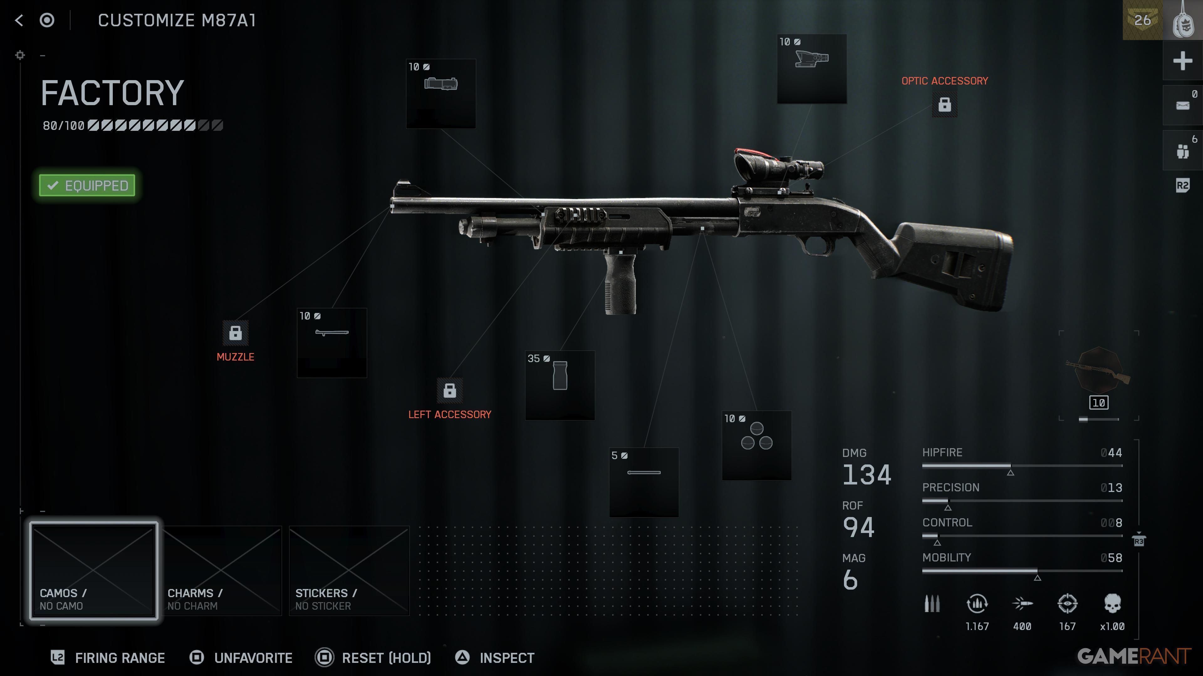 The M87A1 is already a strong weapon even with basic attachments, but certain upgrades can significantly improve its performance. Since you’ll often be using this weapon without aiming down sights, focusing on hipfire accuracy is key, and the Red Laser is a great choice for that. Once you reach Mastery 15, the Blue Laser provides an extra boost to both hipfire and movement, making it a worthwhile addition. Similarly, the Stippled Stubby underbarrel attachment helps minimize recoil, which is important for maintaining control.
