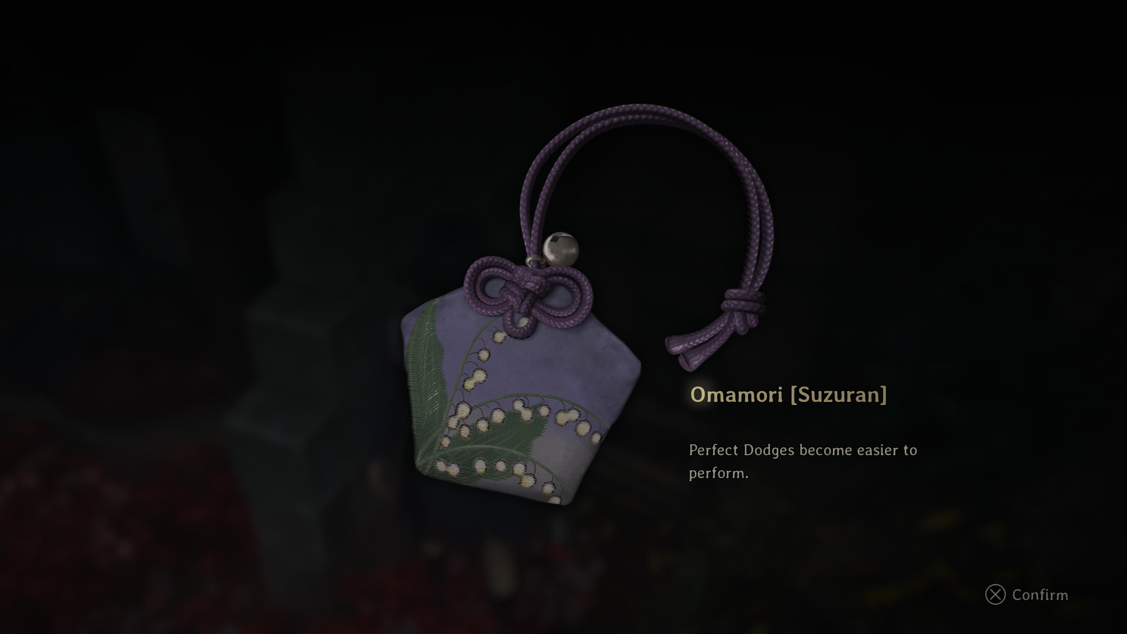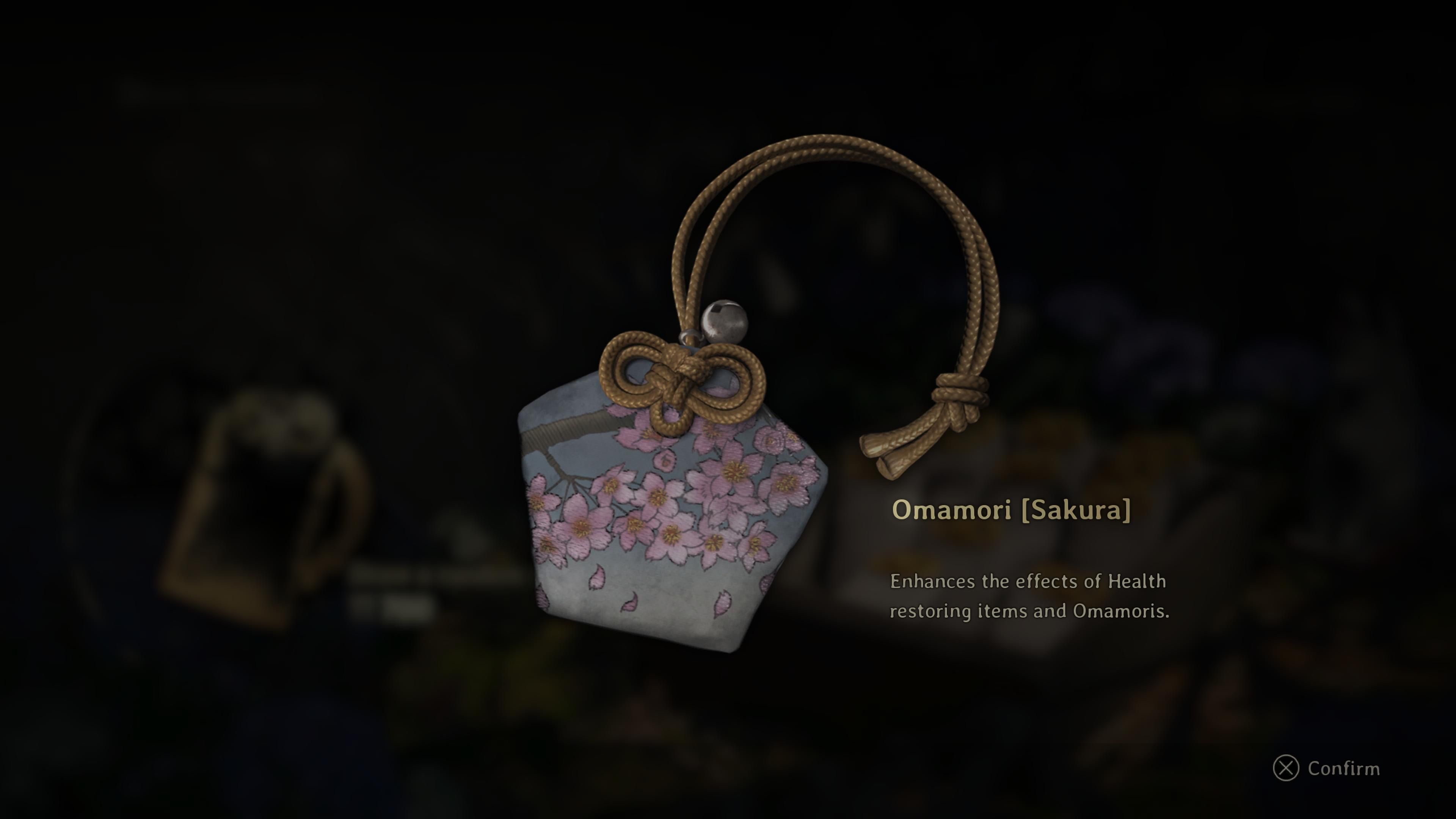 The Sakura Omamori makes your healing items and other charms more effective. For instance, using charms like Suzuran and Crow will give you a larger window to perfectly dodge attacks and earn more health from defeating enemies. This benefit applies to all charms, so consider how it can improve your gameplay.