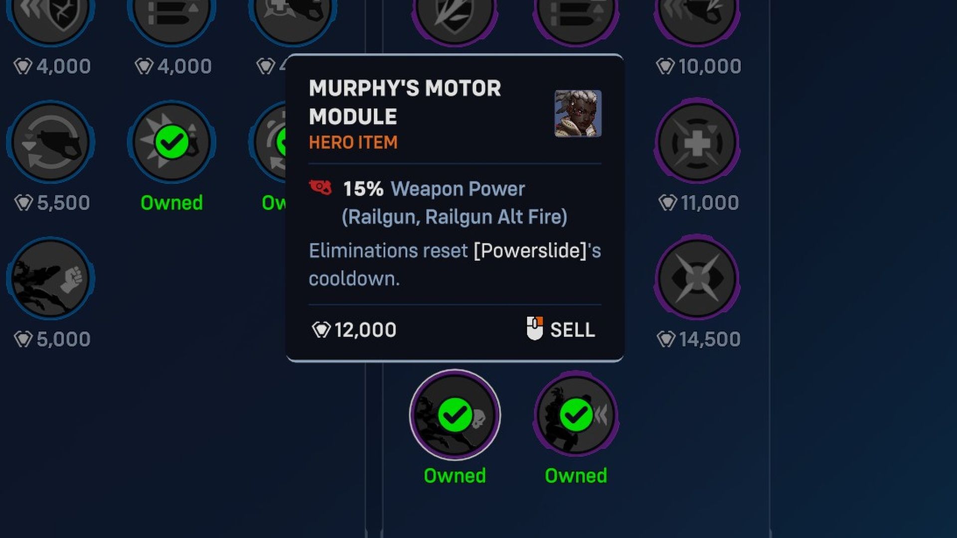 Okay, so the Murphy’s Motor Module is seriously key to how this build works. It basically lets me use Powerslide way more often by resetting its cooldown every time I take someone out, and it also gives Sojourn’s weapon a big damage boost. When you combine that with the Lock and Load Power – which reloads your Railgun when you slide – it’s amazing! In Stadium matches, I practically never have to stop to reload manually. It’s a game-changer!