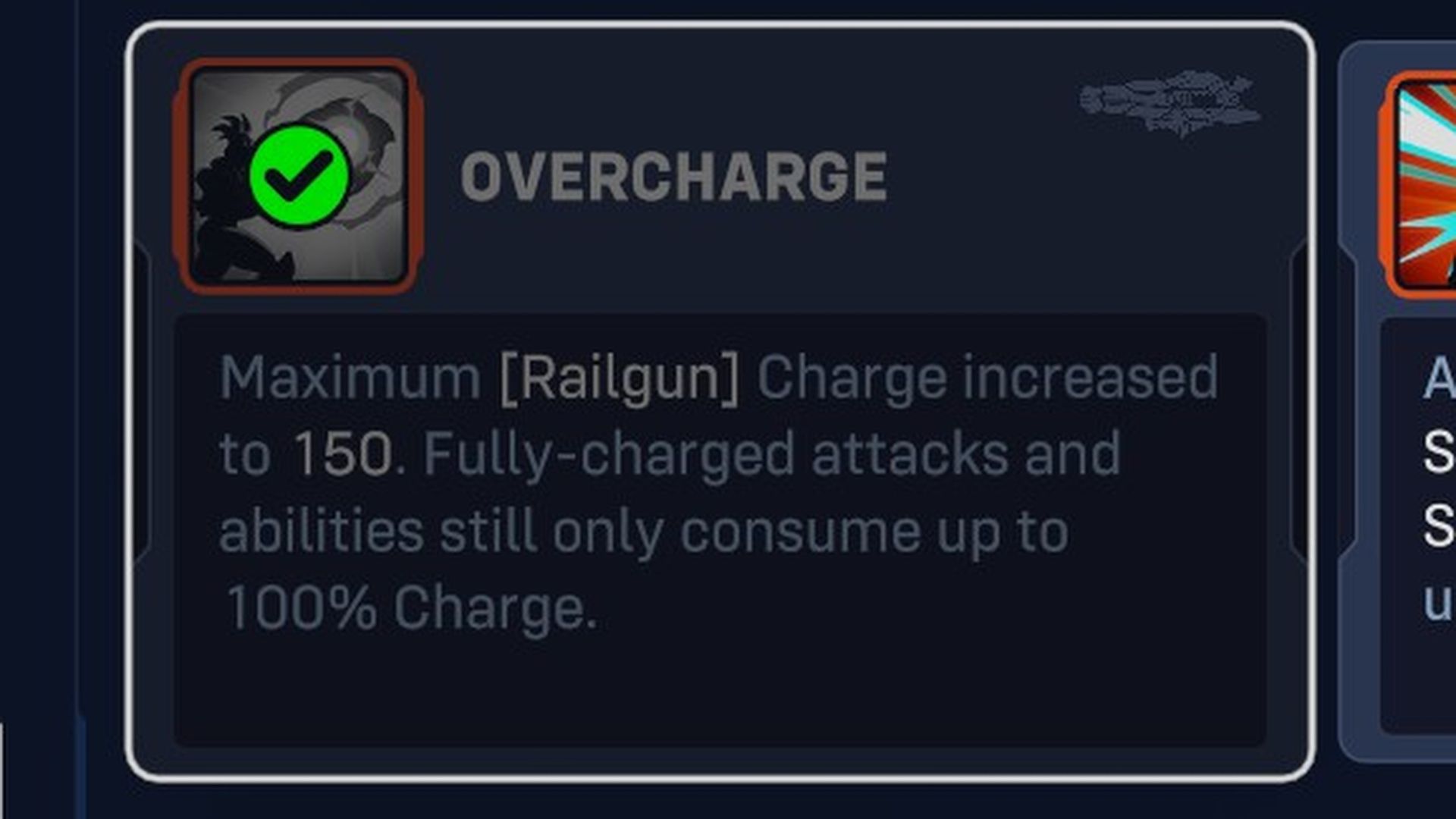 The Shah-Mat Strategem makes Sojourn’s weapons stronger and faster, and also speeds up her Railgun shots after charging. Because Sojourn doesn’t instantly hit targets, the faster projectiles are a significant advantage.