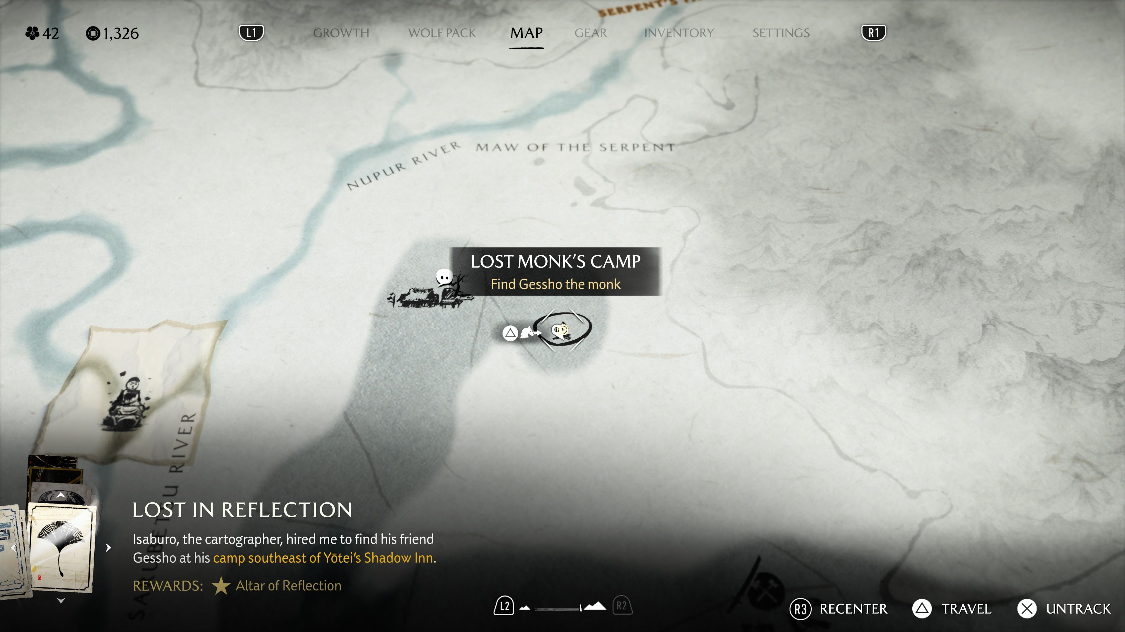 To learn new skills in Ghost of Yotei, players should go south of the inn to find Gessho, a monk. He’ll guide you to an Altar of Reflection. This quest is definitely worth completing, as it teaches players how to find other altar locations as well.