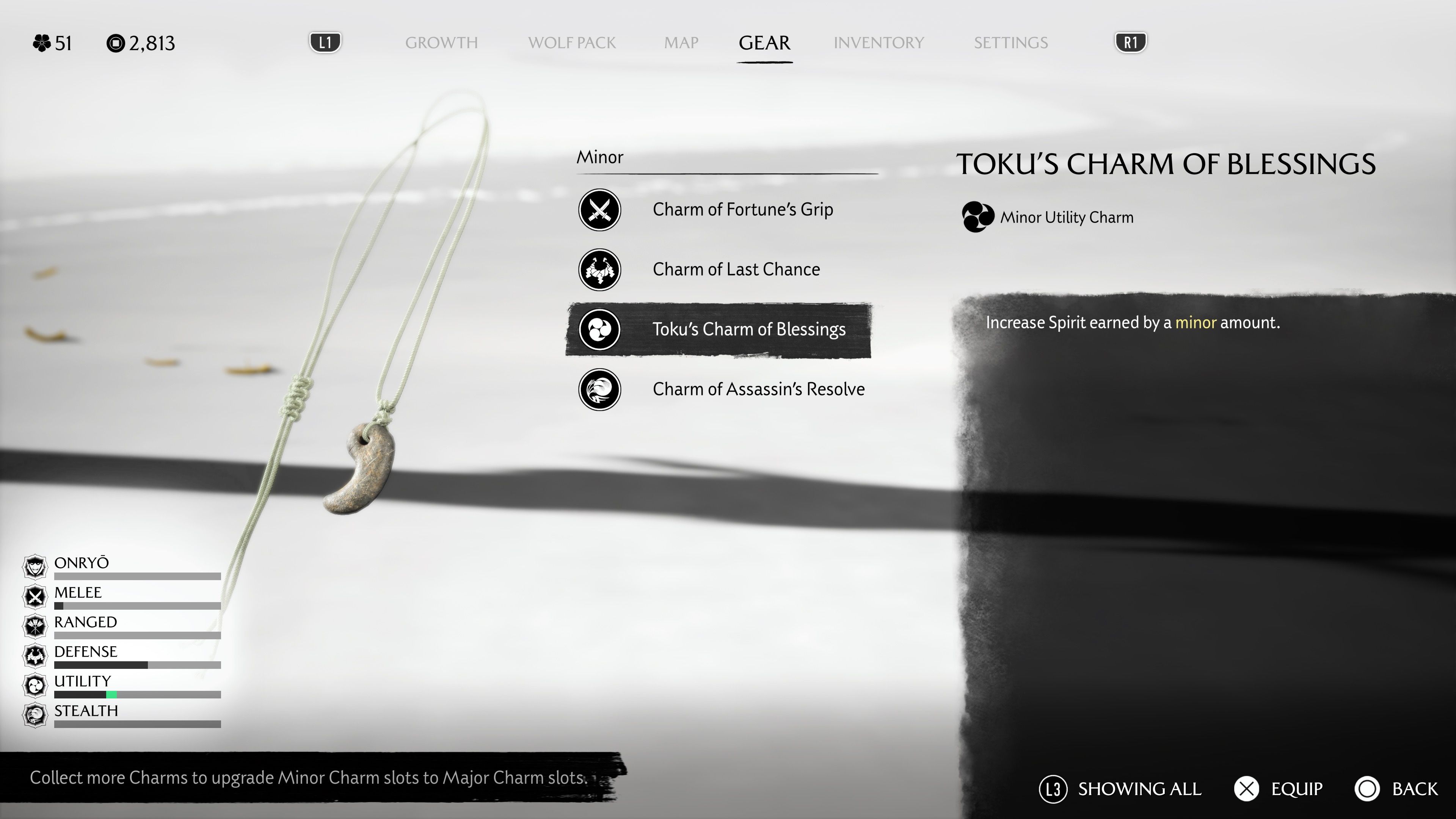 This quest contains some spoilers, but it generally involves fighting samurai and culminates in a touching finale. Completing the quest rewards you with Tokuâs Charm of Blessings, which boosts your Spirit during combat. Spirit is the resource players use to activate skills, such as healing.