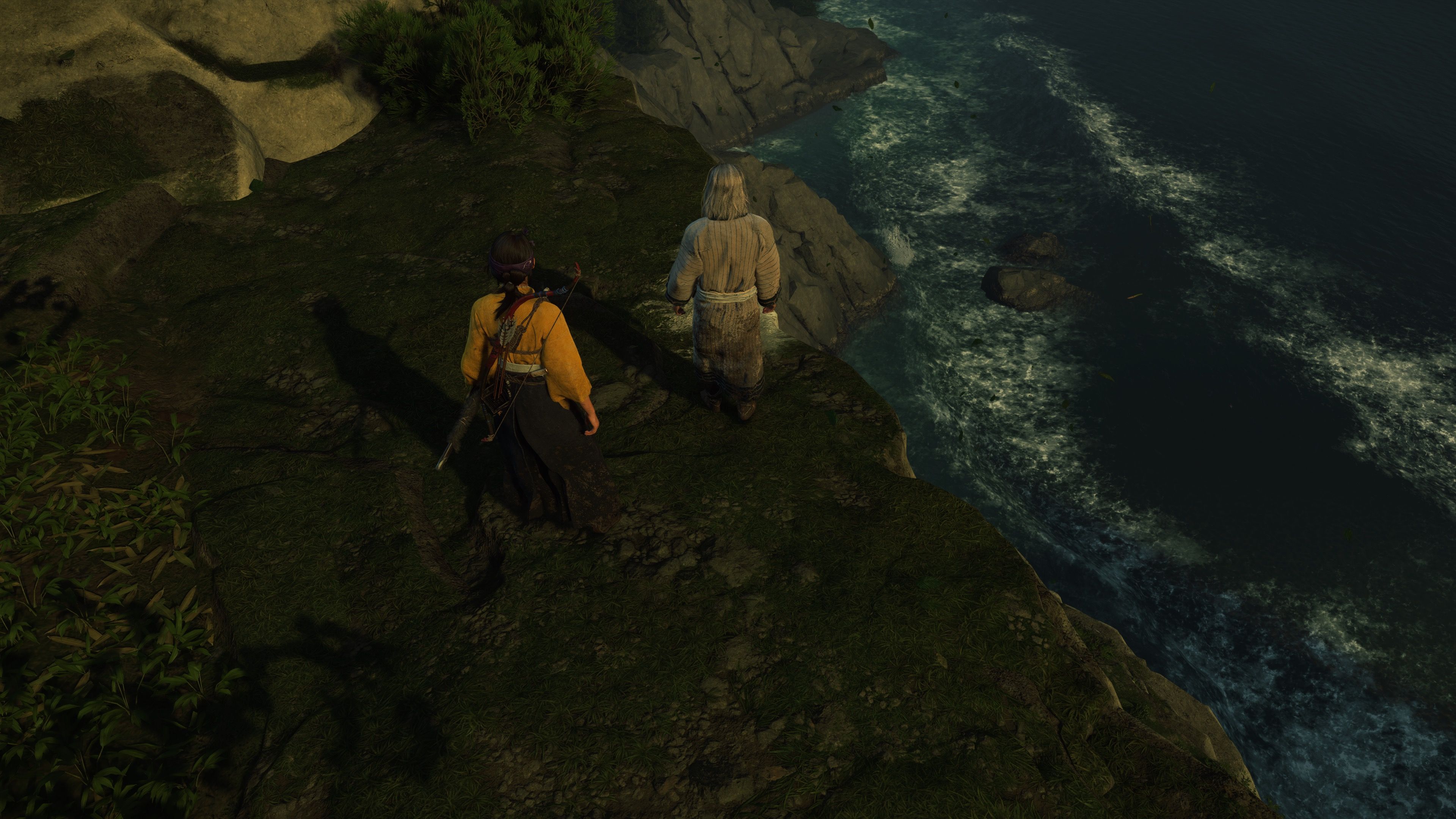 This trader is offering a reward if players can retrieve his bottle of Askur alcohol. To do so, players will need to navigate some challenging platforming sections on tall cliffs overlooking the sea. While returning, players can begin a new quest by speaking with a Settler woman who is grieving the loss of her husband. Throughout the world, you’ll find pillars containing useful items, and at this specific location, you can acquire a uniquely chilling scabbard – the Unyielding Tempest – for Ghost of Yoteiâs Wolf Blade.