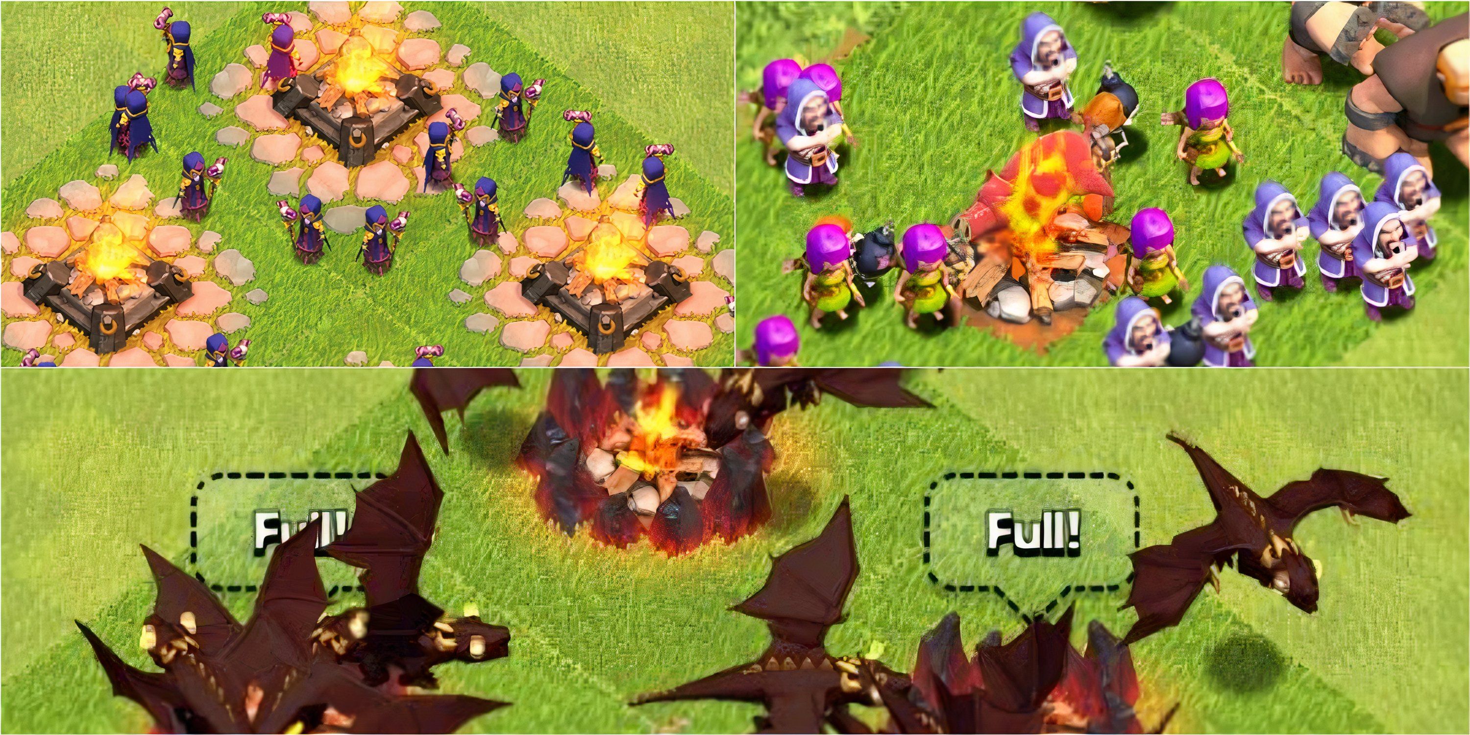 With ten Witches, two Golems, and three Healers, backed up by one to two Heals, Rages, and a Jump, Witch Slap stirs up pandemonium. A horde of Skeletons rushes the base, overpowering defenses as the Witches stay at a distance. This tactic deluges the base with an avalanche of summoned Skeletons, bolstered by Healers. It’s surprisingly potent and less dependent on precise spell synchronization compared to other assaults.