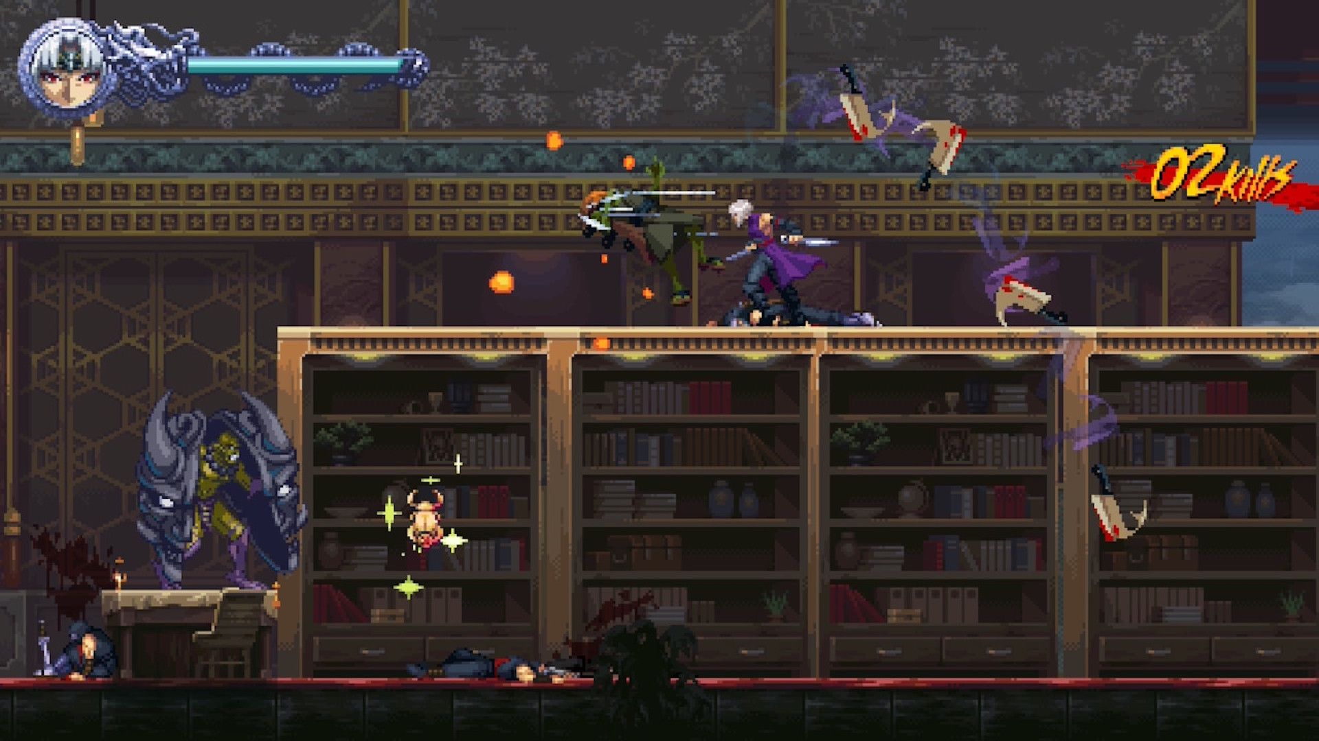 Ninja Gaiden: Ragebound is a 2D action platformer inspired by the classic NES Ninja Gaiden games, but with some updated features. The game lets you play as Kenji, a ninja from the Hayabusa clan, and Kumori, a female ninja who rivals the Dragon Ninja clan. A surprising event causes them to merge into one body, and players can switch between controlling Kenji and Kumori at any time. Each character has unique skills – Kenji excels in close combat, while Kumori is stronger from a distance.