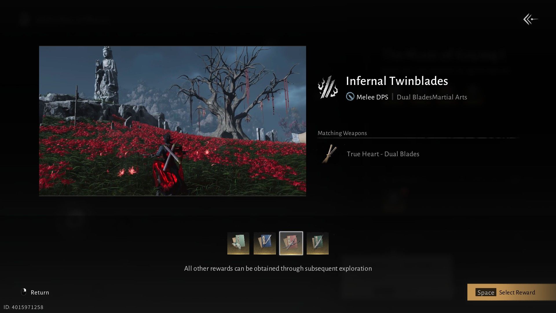 Weapon names such as Infernal Twinblades, Nameless Sword, and Thundercry Blade don’t refer to the weapons themselves, but to specific fighting styles. To use a weapon associated with one of these names, you must first learn the corresponding martial art. For example, simply owning twinblades isn’t enough – you need to learn the Infernal Twinblades style to actually wield them effectively.