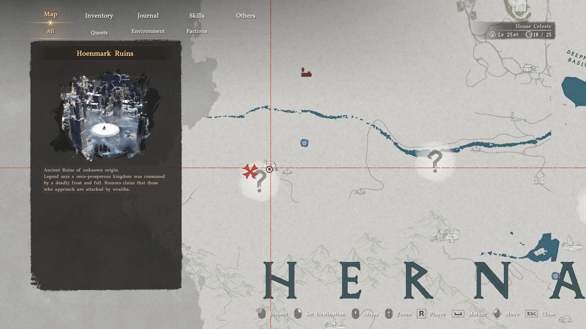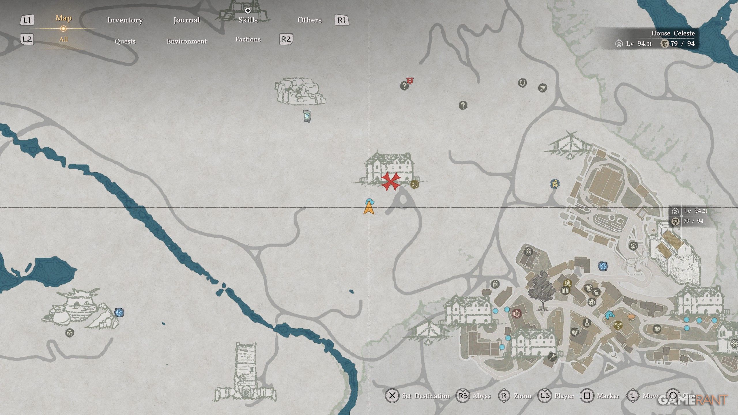 The cloak is located in a ruined fort directly south of where you discovered the Shadow Armor. Find the Hoenmark Ruins across the river and go to the marked location on the map. Look for a ruined building with a barred door. Once there, go up to the roof and find a stone section on the floor that doesn’t quite fit. Stand on that stone and use Force Palm to break it. This will take you inside the building, right next to the chest containing the Plate Cloak of the Shadows.