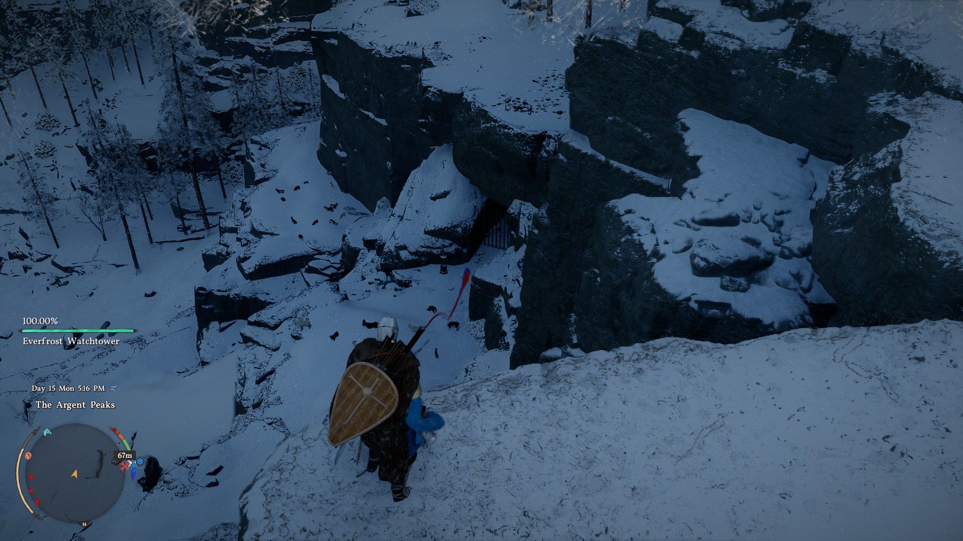 You’ll find this chest armor in a small cave with a locked entrance. Go to the location marked on the map and search near Everfrost Watchtower for the cave entrance among the rocky cliffs. Light the torch beside the entrance to unlock the gate, and then open the chest to get the armor.