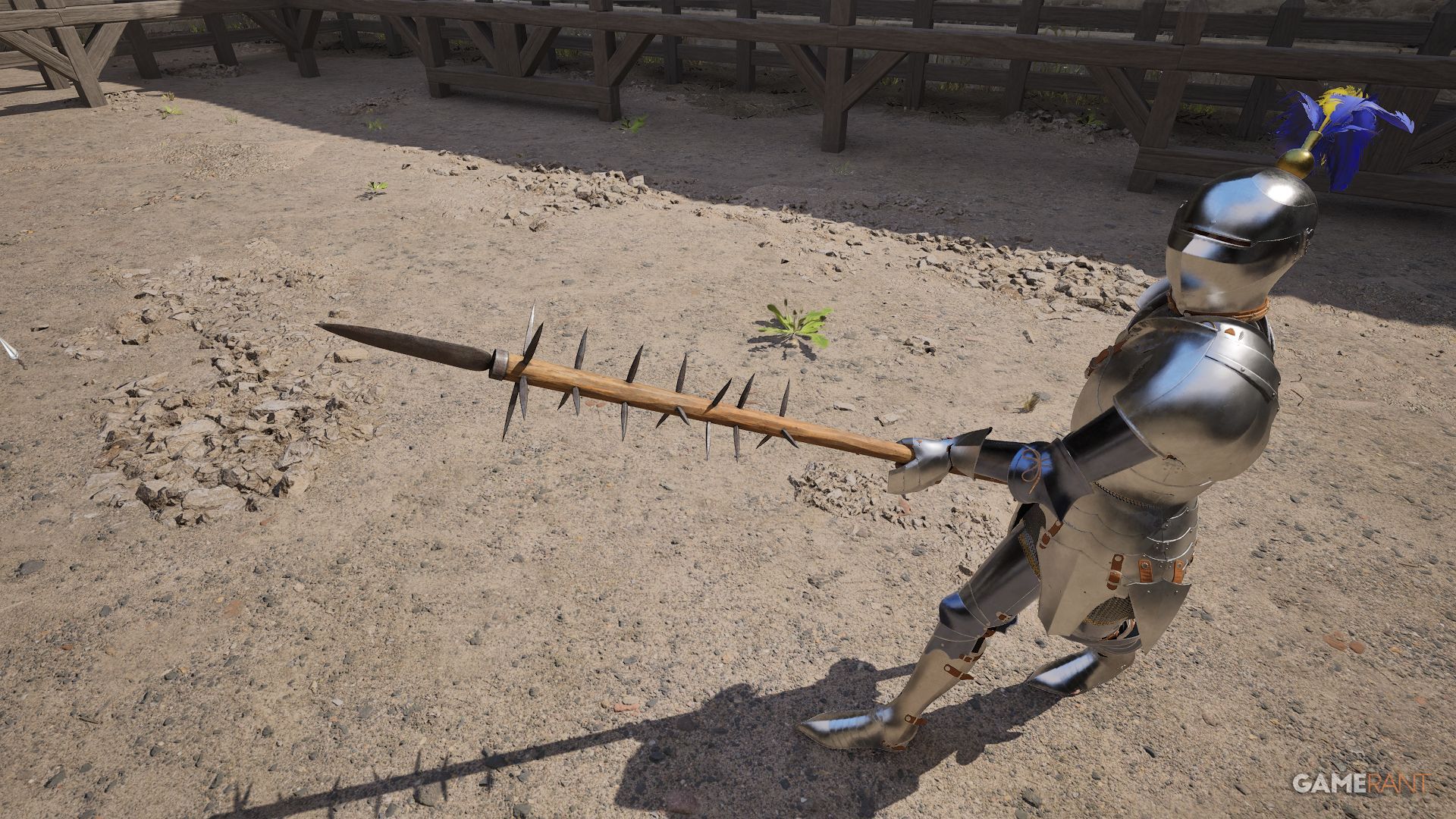 Originally called the ‘plancon’ during development, the warstaff is basically a spear covered in horizontal spikes. It’s considered one of the strongest weapons for the Half Sword fighting style, offering excellent range and a wide attack area.