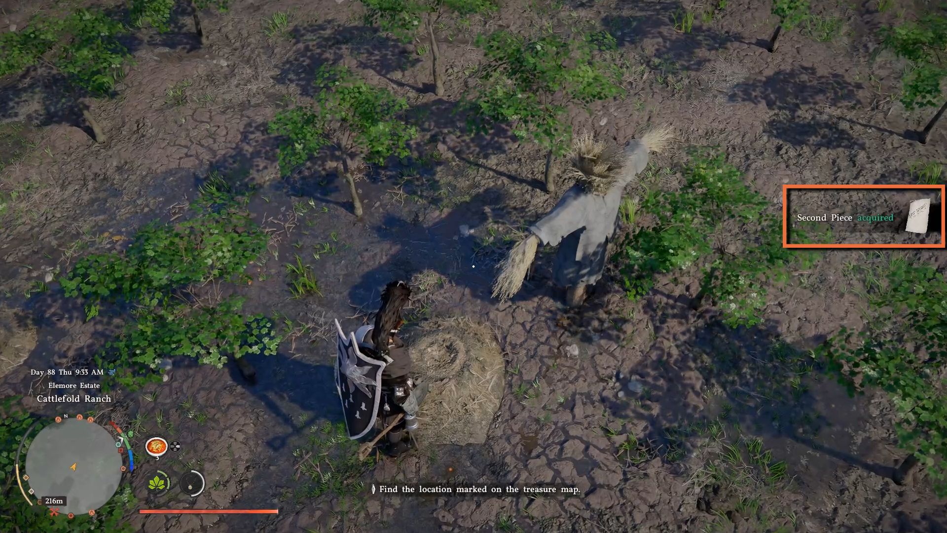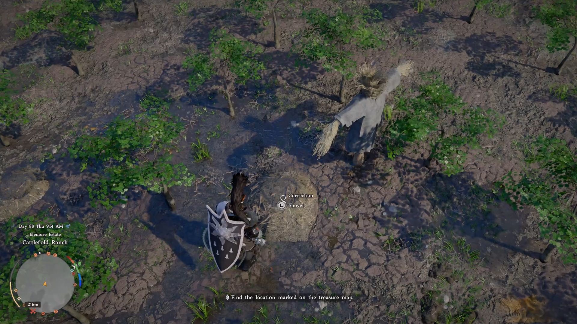 Close to the grape marking, and assuming the scarecrow is still standing, you’ll find a pile of dirt.