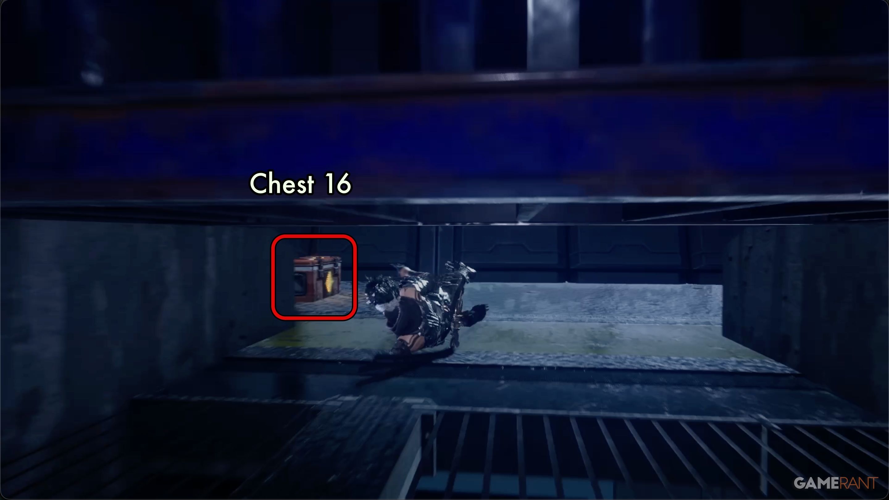 You’ll find Chest 16 in the back corner. You can get to it by either crawling under the containers or going around them. Once you’re there, climb the ladder next to the chest to find Chests 17 and 18 at the top.