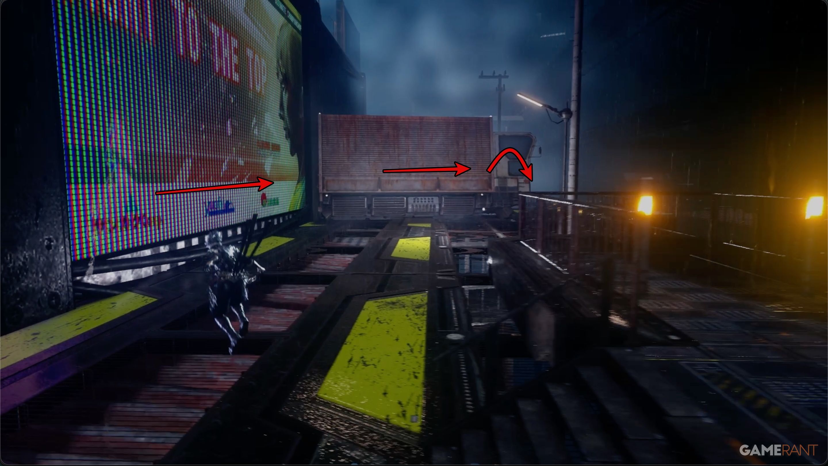 Once you’ve exited the second DarkNest Terminal, use the Caddis Wire to cross the first big gap. Continue forward, and you’ll reach another large chasm. You can cross it to stay on the main path, or turn left to discover the first Purgatory Gate in Ninja Gaiden 4.
