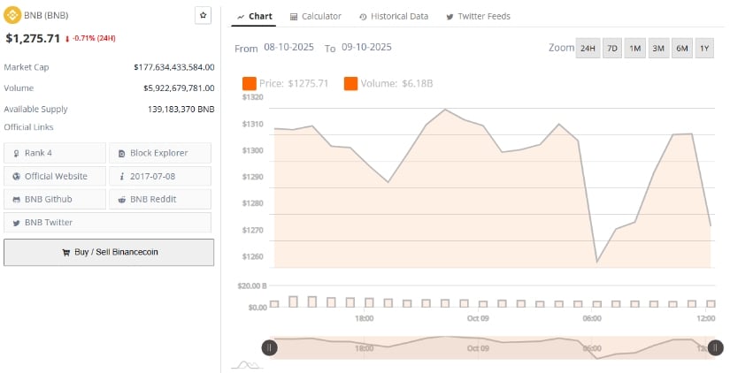 According to the reliable BraveNewCoin data, the Coin is currently priced at $1,275.71, reflecting a modest 0.71% decline in the last 24 hours. The token holds a market capitalization of $177.63 billion, securing its place at Rank #4 among global digital assets. A most respectable position, indeed! 🏆💹