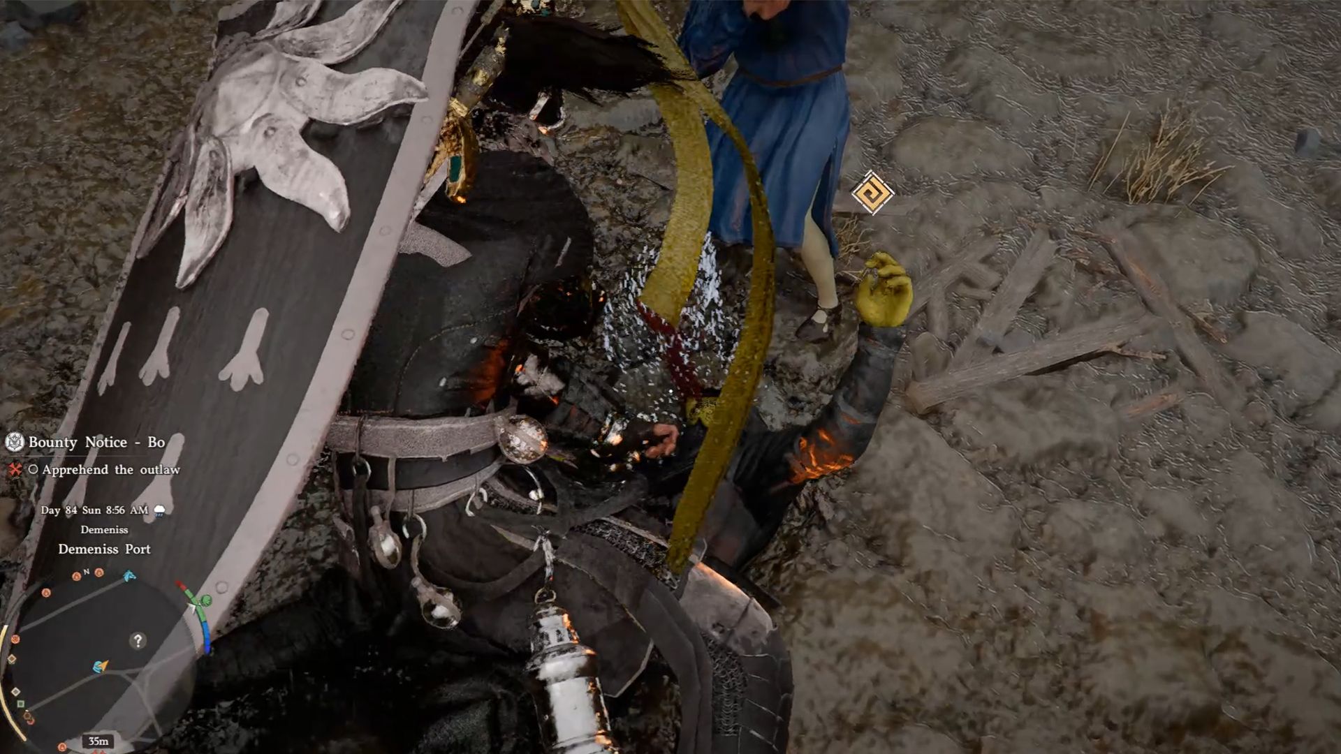 To claim the full reward for capturing Bo, you need to deliver him alive to the Demeniss Guard Station. The easiest way to do this is by riding with Bo on horseback. Be careful not to lose the horse, and don’t summon it from far away. Importantly, you can’t fast travel after capturing Bo, as it will reset both his and the horse’s positions.