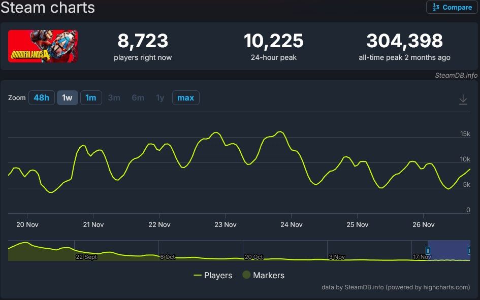 It will be interesting to watch how many people play Borderlands 4 on Steam when the first major story expansion is released. Significant updates often bring back players who haven’t played in a while, and we might see that happen with Borderlands 4 next year.