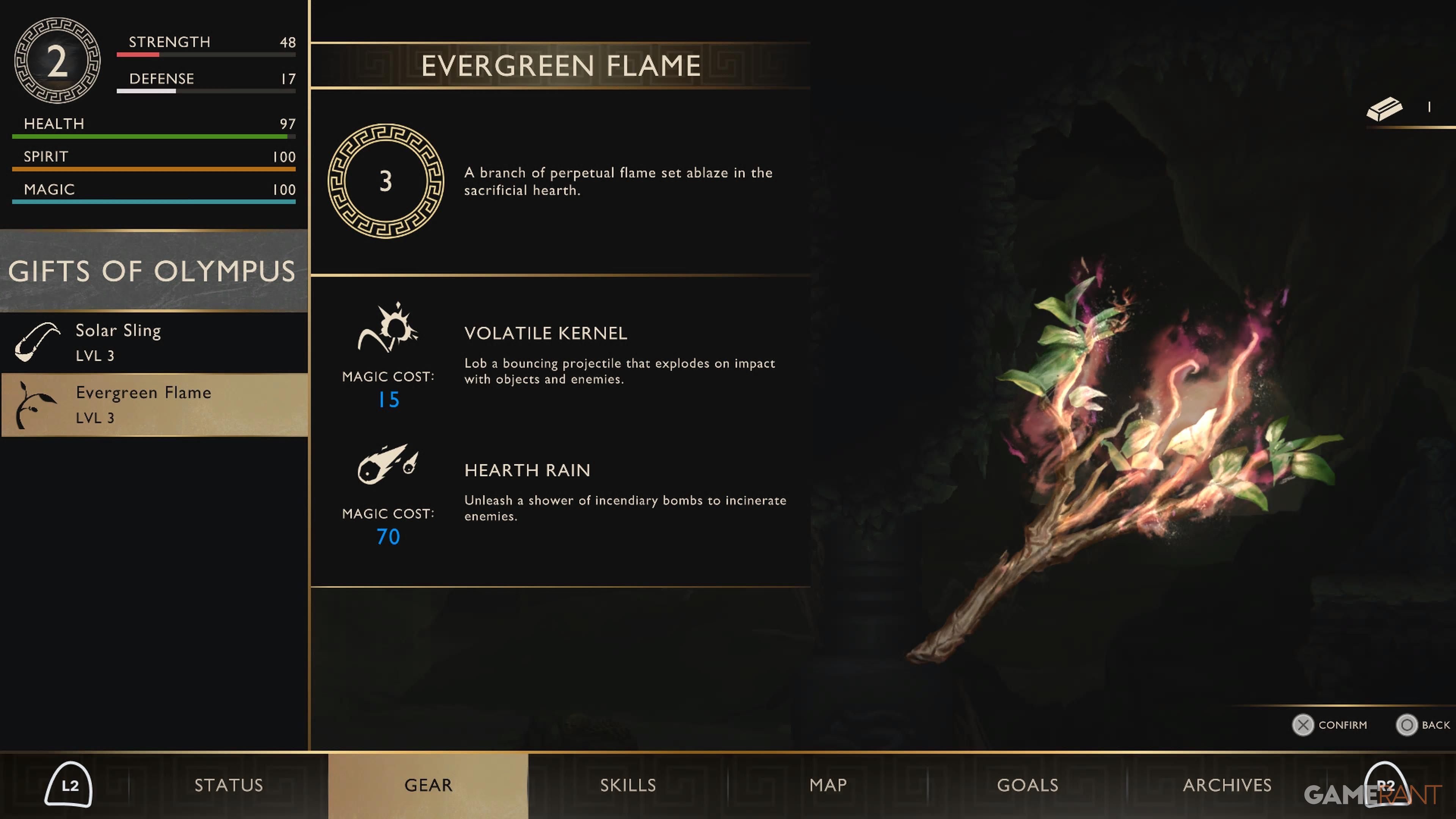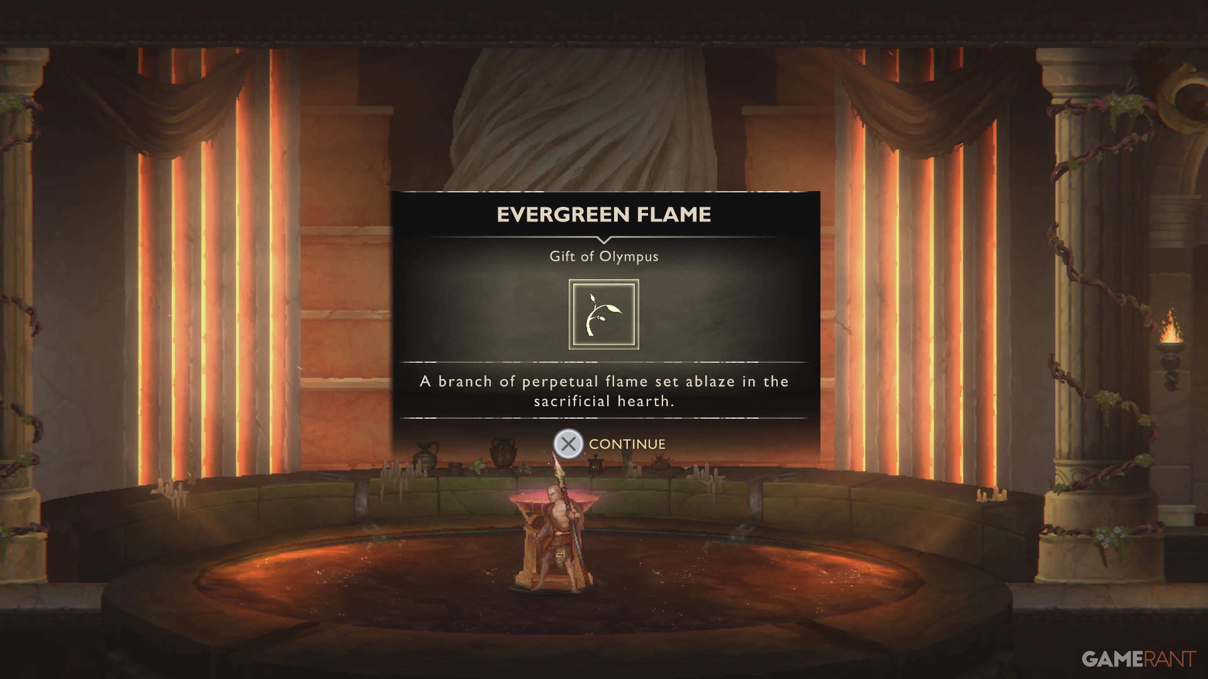 Similar to how you get the Solar Slingshot, you’ll find the Evergreen Flame by exploring a temple dedicated to one of the gods. Specifically, you’re looking for the Temple of Hestia, which is located in The Great Cistern, right below the city of Sparta. You’ll need to defeat the first boss, Ioke, before you can reach it.