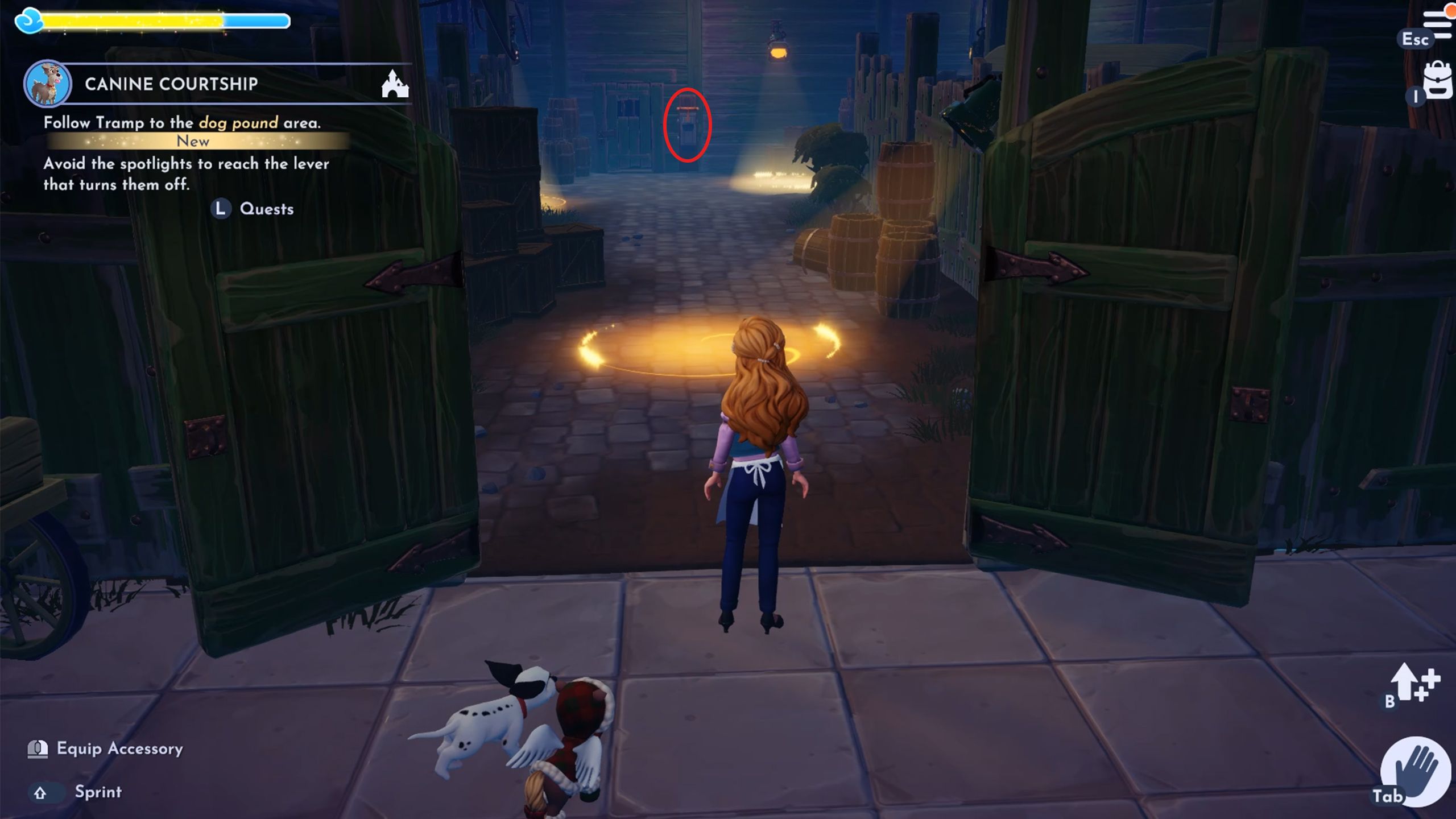 Once you’ve spoken with Tramp, he’ll take you to the Dog Pound. Here, you need to avoid the bright lights and flip the switch at the back to switch them off. Tramp will wait outside while you climb the ladder and enter through the window, finishing the Canine Courtship quest in DDV.