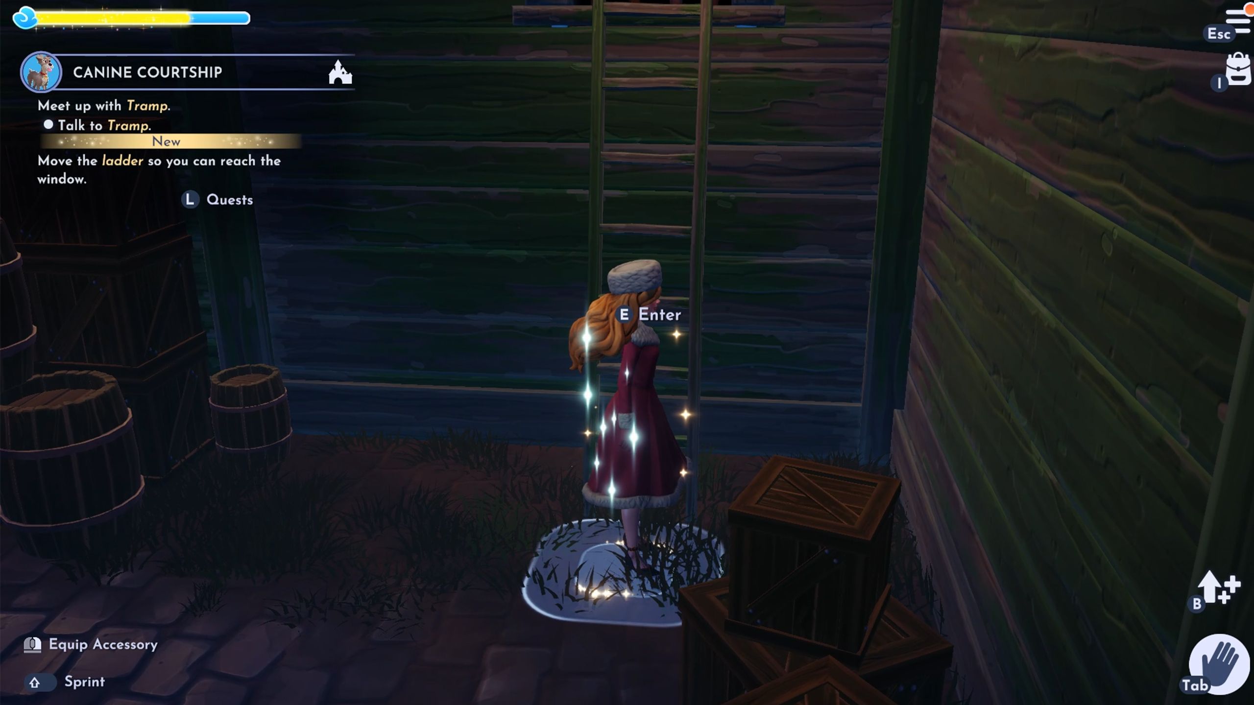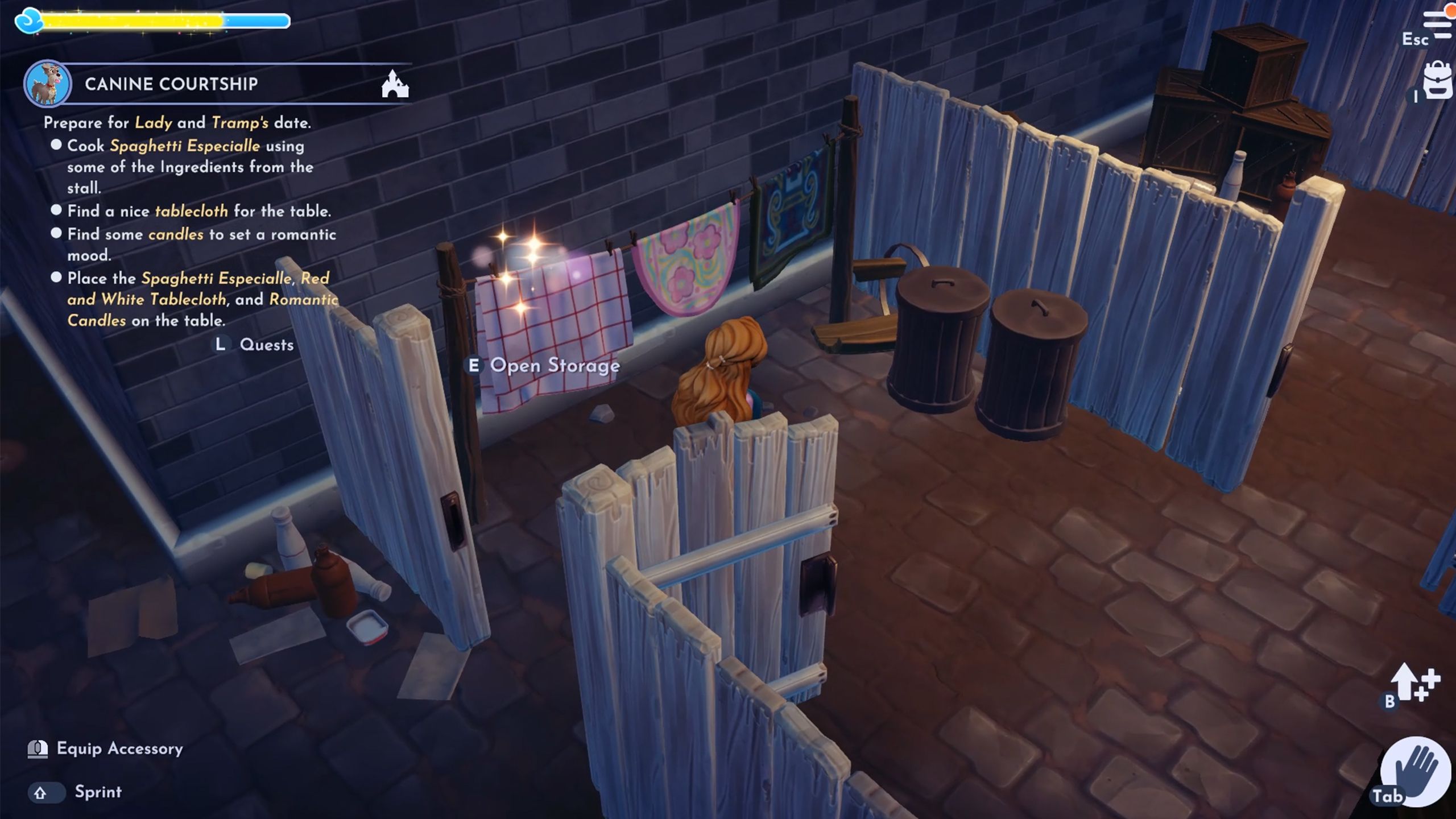 Okay, so to start the Canine Courtship quest in Disney Dreamlight Valley, you first need to unlock the Lady and the Tramp realm at Dreamlight Castle. It costs 13,000 Dreamlight to do that. Once you’re in, you’ll find yourself in an alleyway. I went to talk to Tramp, but he totally ignored me – guess he doesn’t trust me yet!
