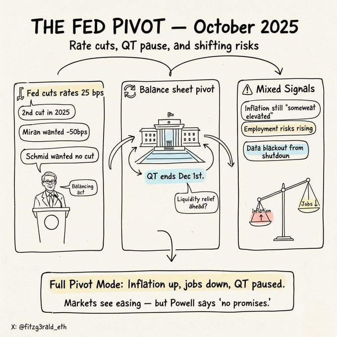 Ah, the Fed, that grand maestro of monetary policy, has deigned to lower interest rates by a paltry 25 bps, a gesture as generous as a miser’s alms. Quantitative tightening, too, is paused-a temporary reprieve for the crypto realm, where liquidity now flows like a river of champagne at a Gatsby soiree. 🥂
