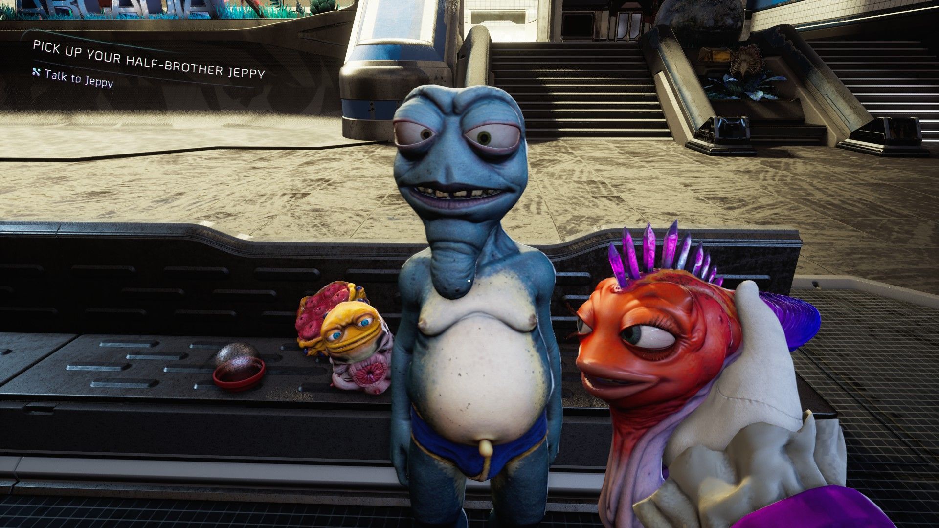 Jeppy is a lively alien who only knows how to say his name, and surprisingly, he’s your half-brother! For now, the important thing is to keep him entertained for your mom, and to complete the ‘Playdate With Jeppy’ objective, you’ll need to find him three times – he’s hiding in three different locations throughout the game.