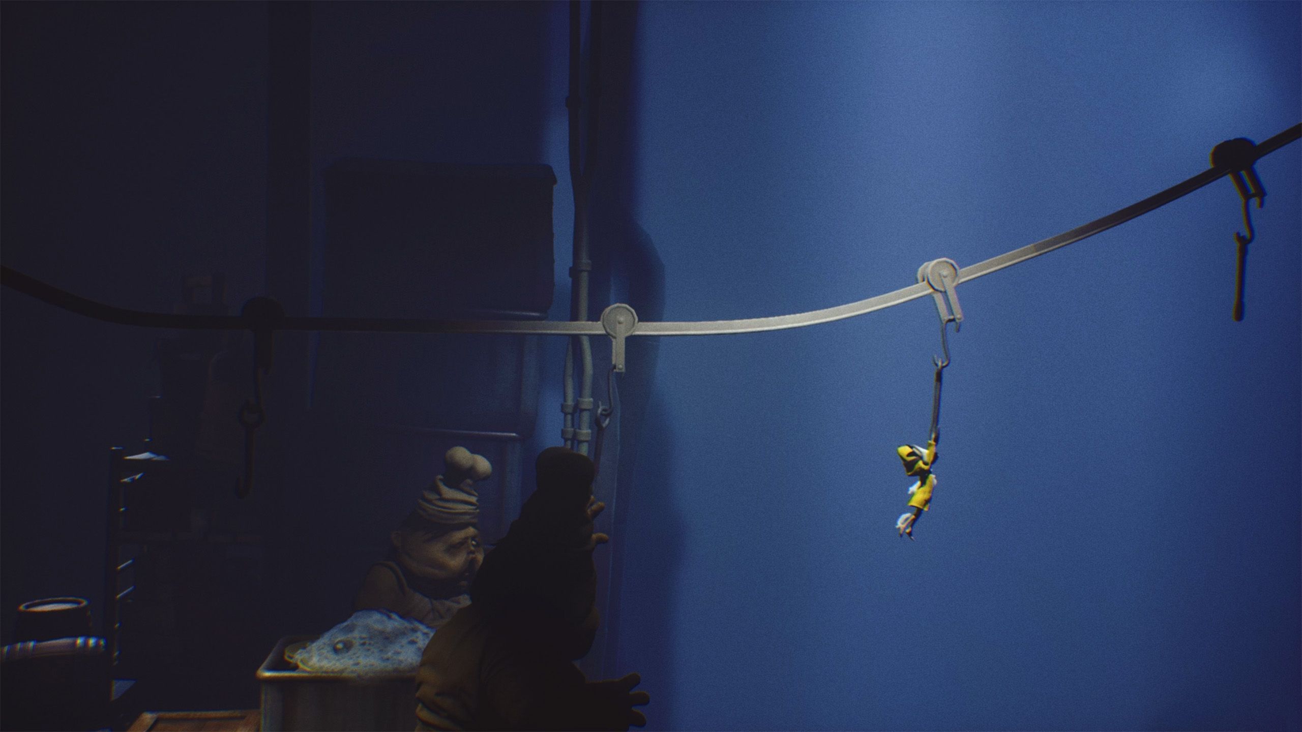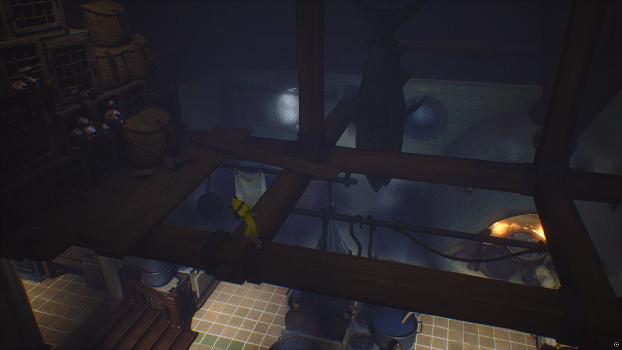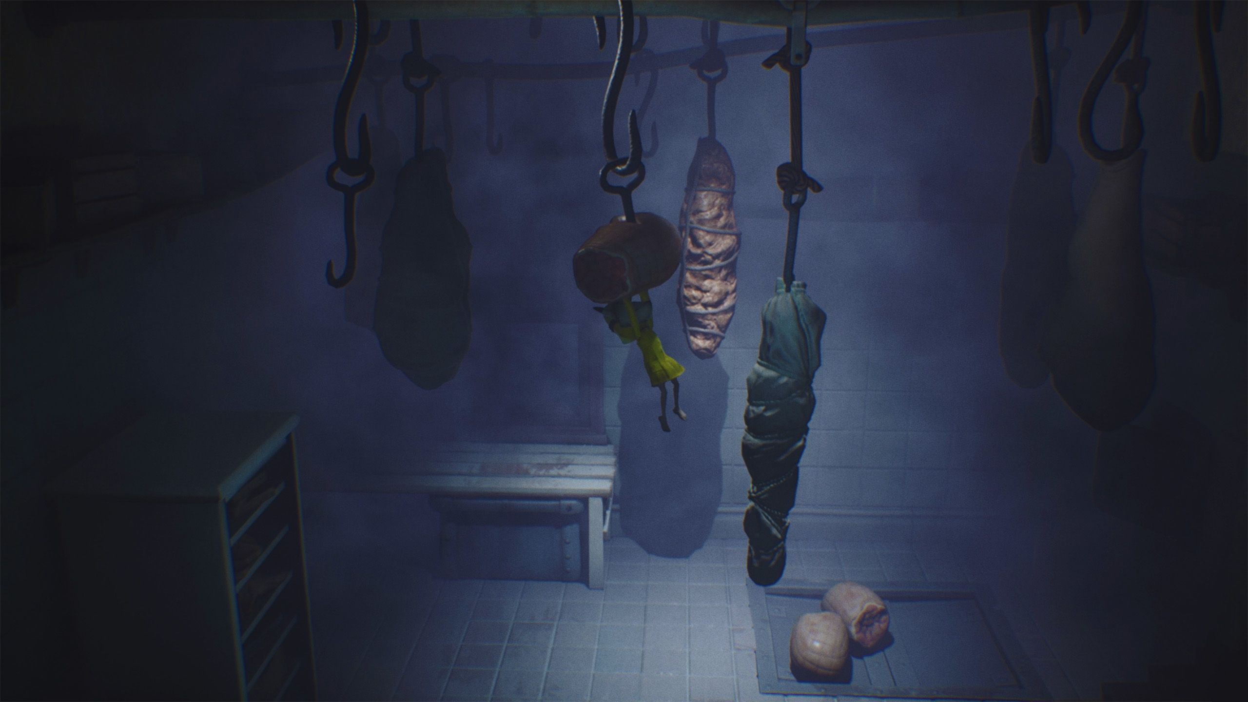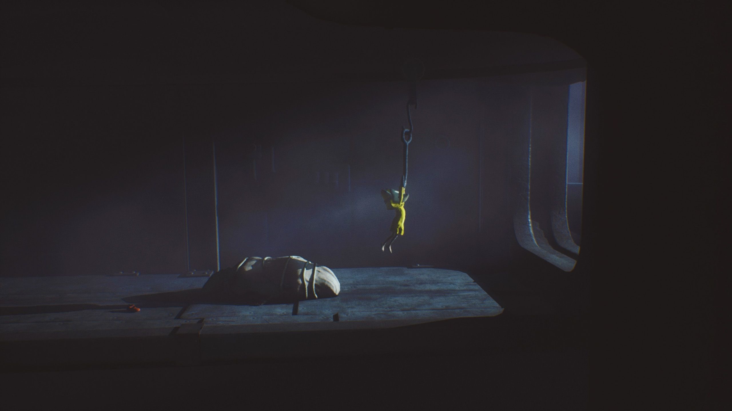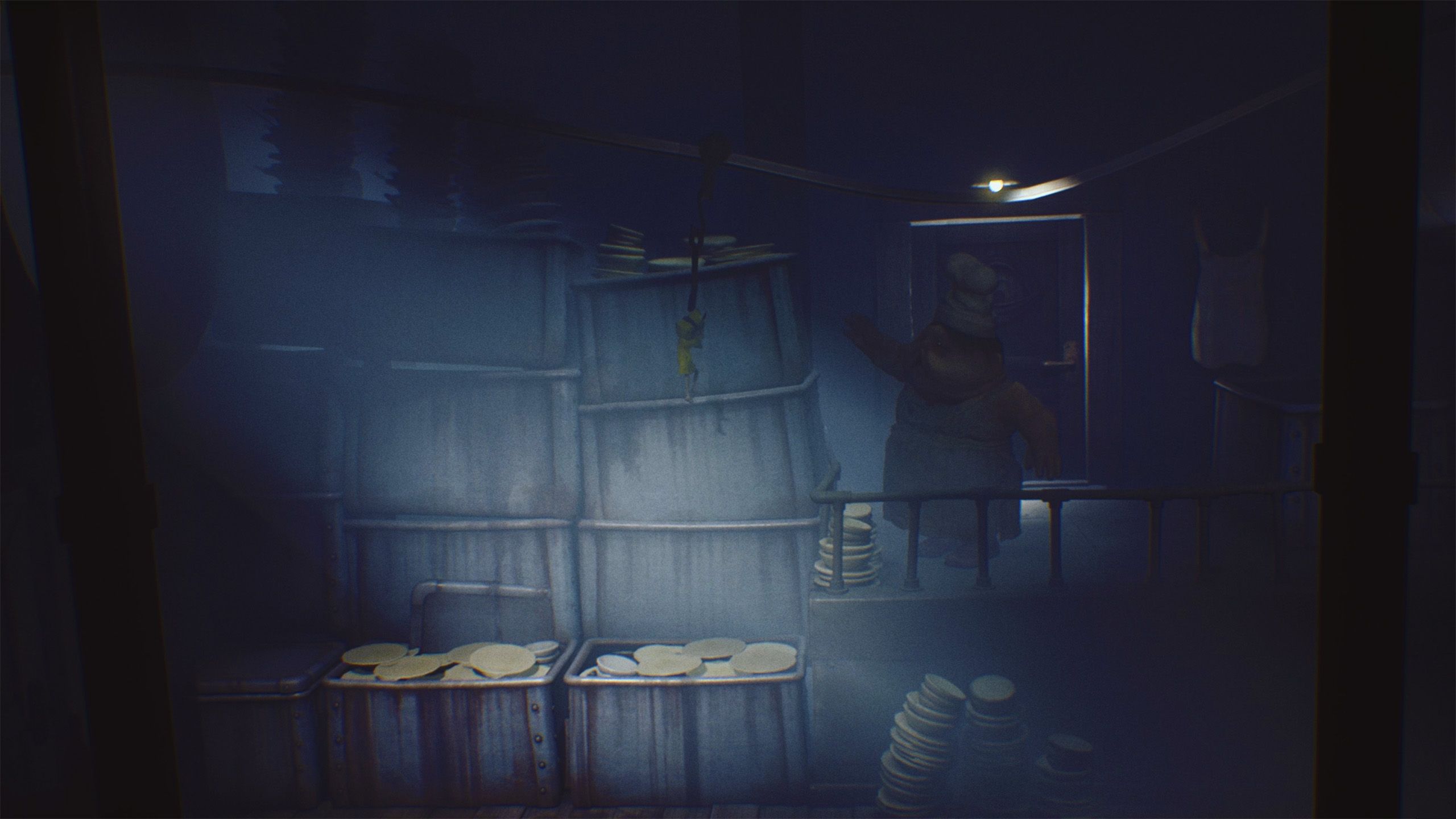 Escape the first Chef by releasing the hook and quickly running past the second. Then, climb onto the container and grab another hook to swing away from both Chefs. Doing this finishes chapter 3 of Little Nightmares and unlocks the “The Kitchen” Achievement.