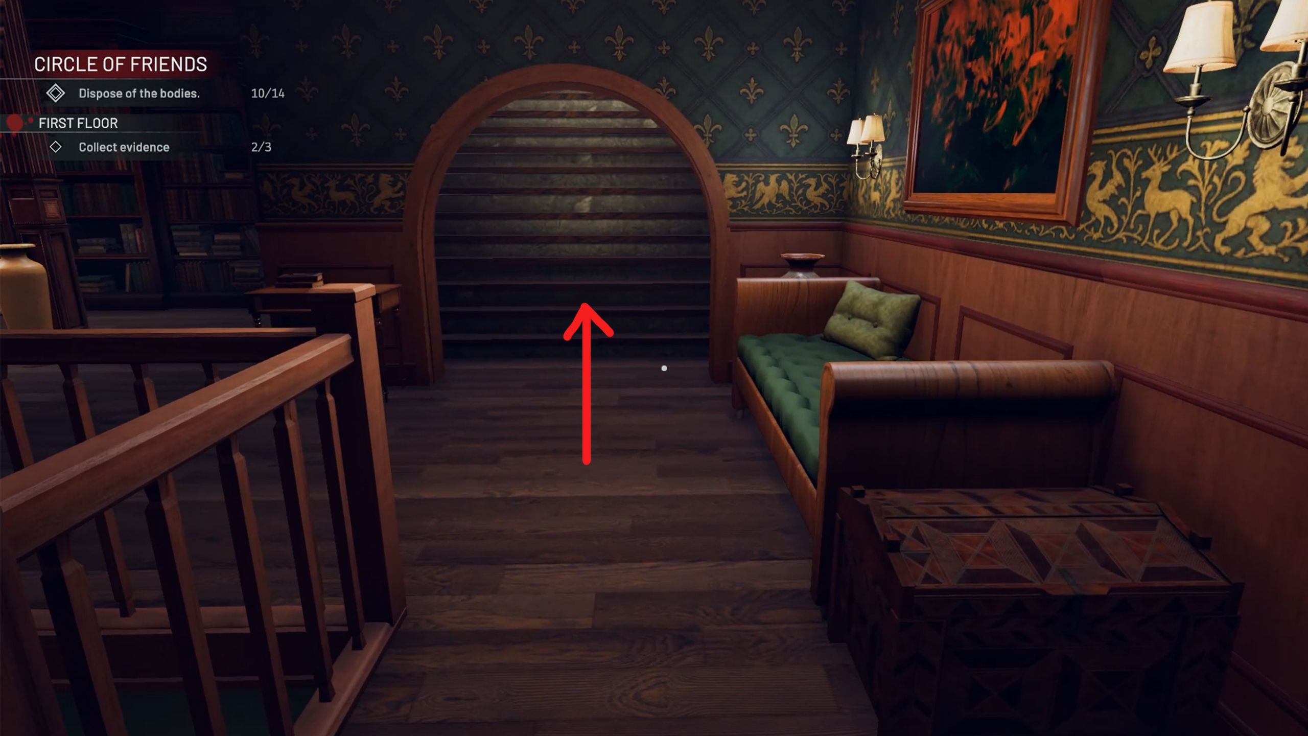 Go back into the Garage through the windows, then head to the door at the end to reach the Corridor. Don’t go into the kitchen on your left; instead, enter the door on your right. You’re now at Holden’s Mansion. Go up the stairs on the left – the game refers to this as the First Floor – to get to the second floor.