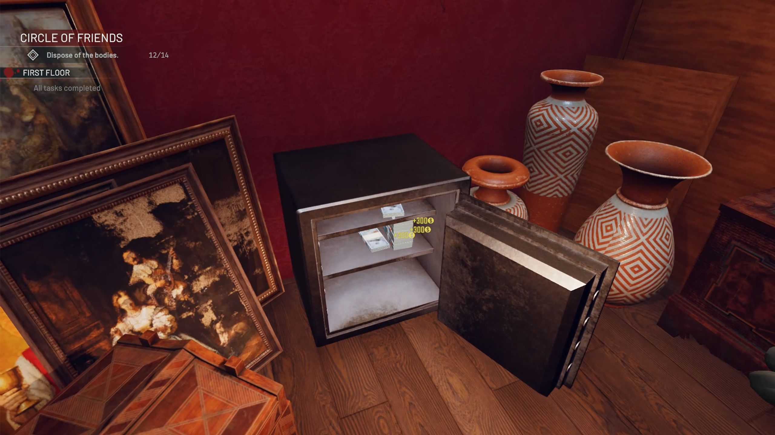 The door opens to a small room brimming with treasure. Valuables are laid out on the table and packed inside chests around the room. While you won’t find any CDs, the safe is full of money.