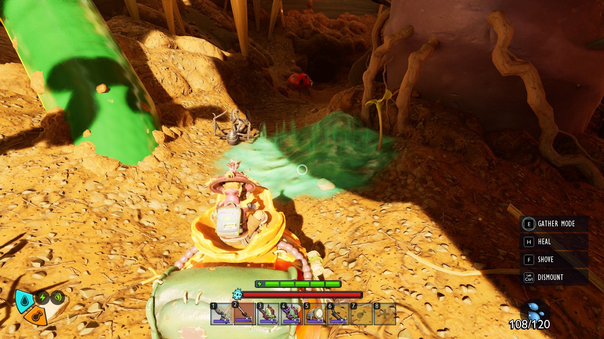 The Ladybugg Bugie features a built-in water cannon perfect for getting rid of pesky insects like potato beetles and earwigs. You can also use the cannon to clean up Sour Tang puddles.
