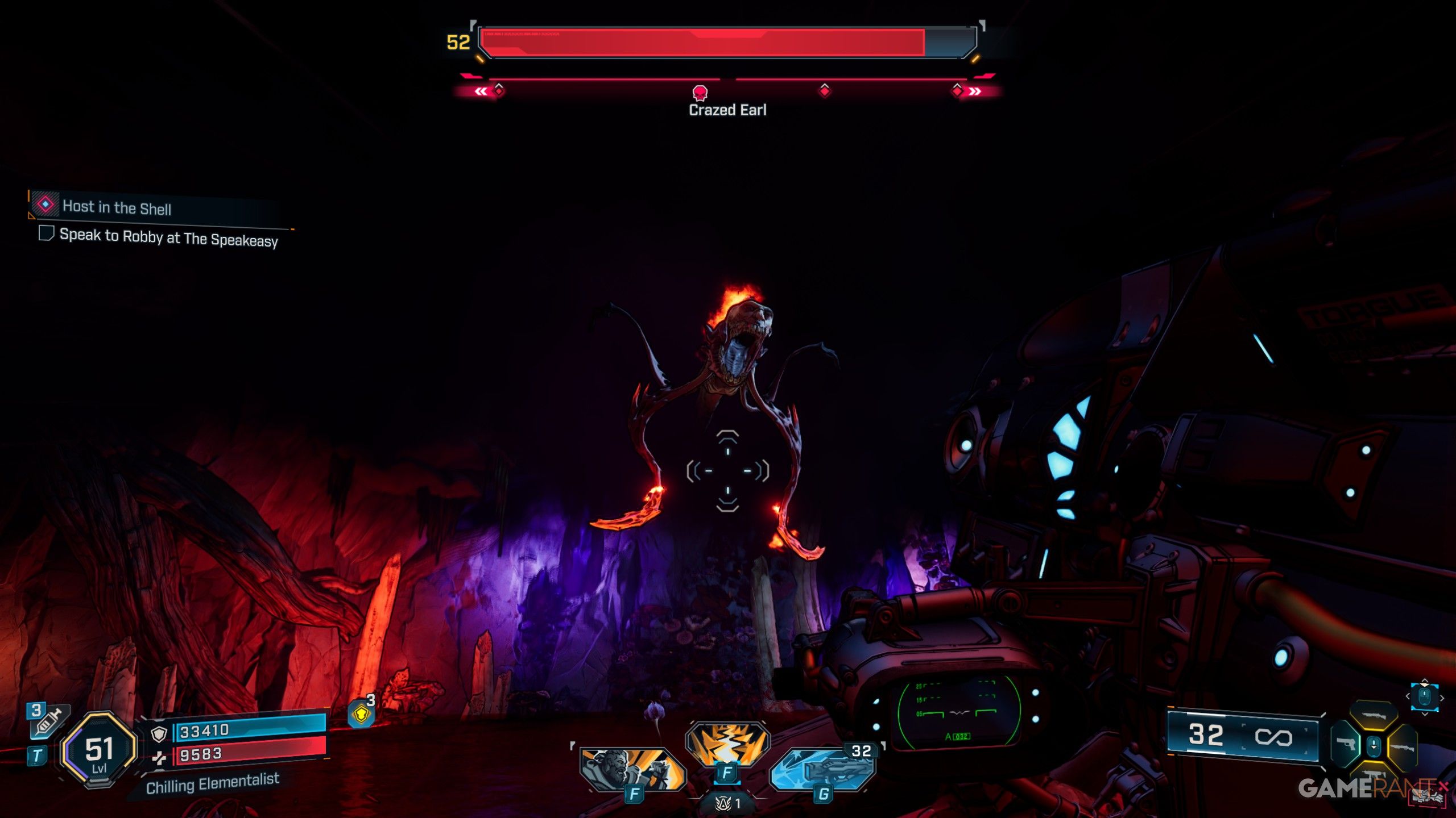 Crazed Earl has three potential weapon drops: two Legendary and one Pearlescent. While Pearlescent weapons are very rare and sought after, it’s debatable whether the effort to get them is worthwhile. Crazed Earl’s weapon itself isn’t very practical – it forces you to take big risks just to attack enemies – so many players might choose to skip trying to get it.