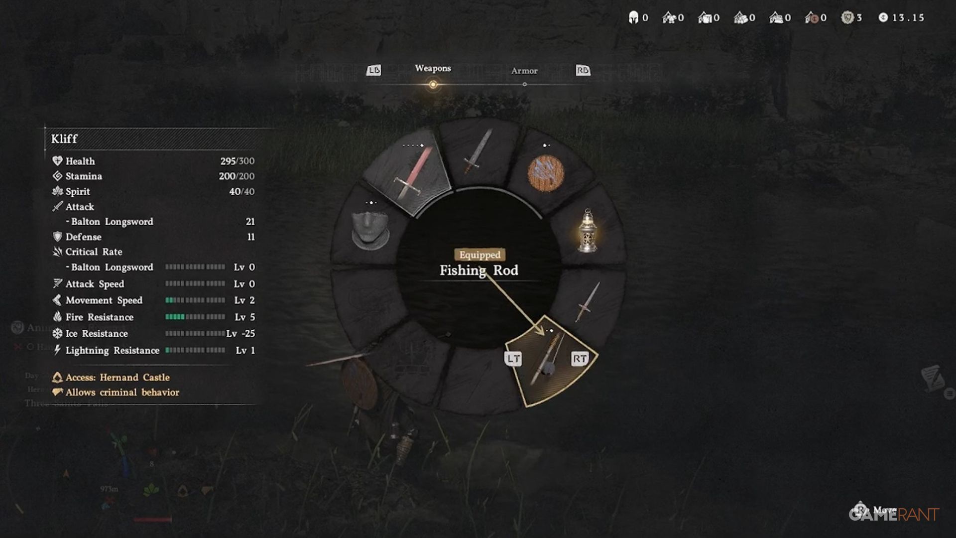 - Or you can equip the fishing rod and try your luck that way.
