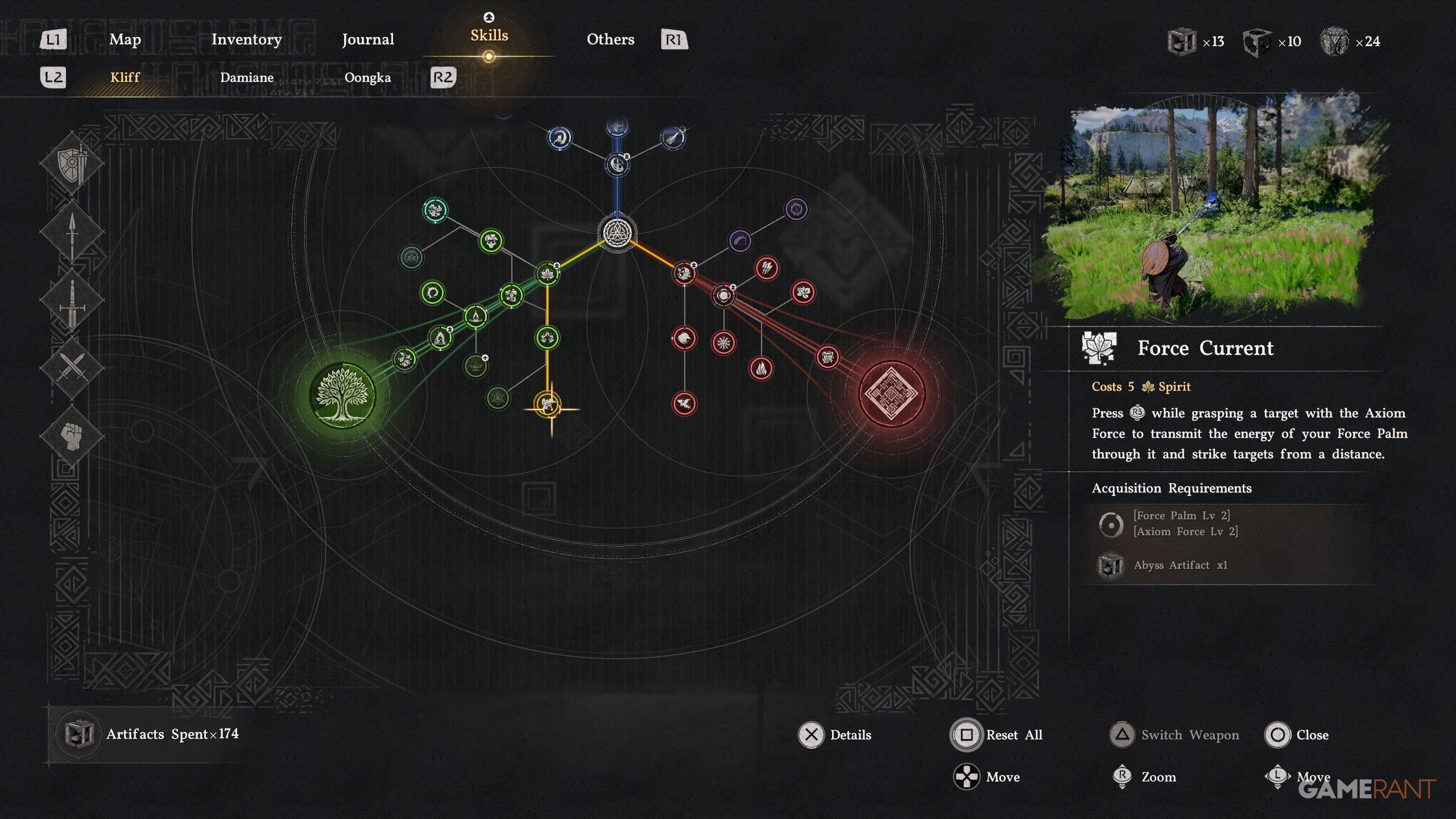 - Force Current can be used with Axiom Force (L3), and then, while holding an item with Axiom Force, use Force Palm (R3).