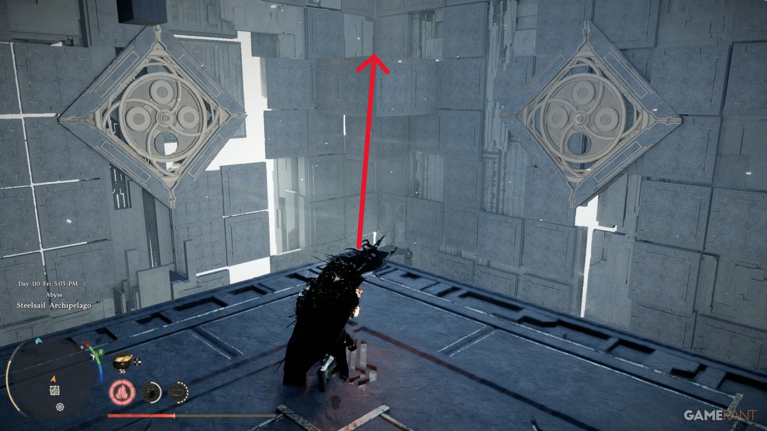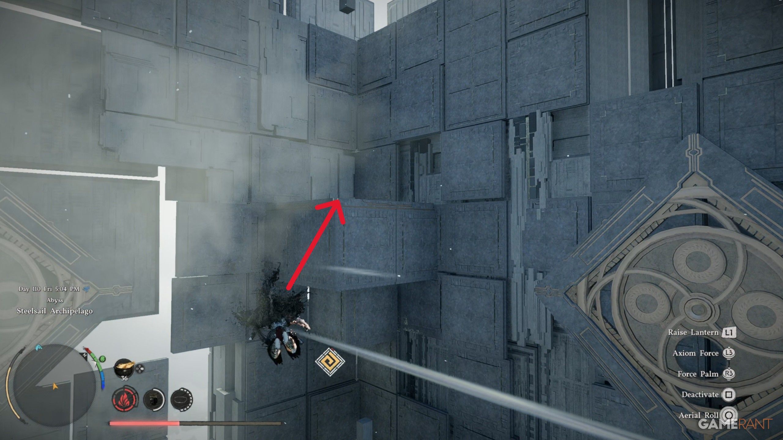 - Face the south wall inside the Steelsail Archipelago cube and use Force Palm on the activation trigger.