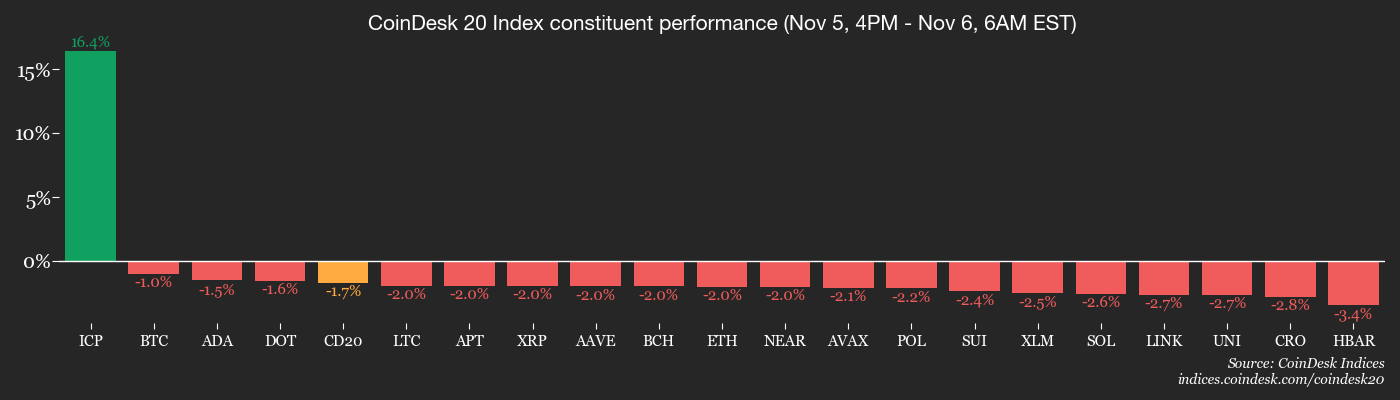 - CoinDesk 20 is down 1.33% at 3,261.54. 24hrs: +1.80%. ๐งฎ