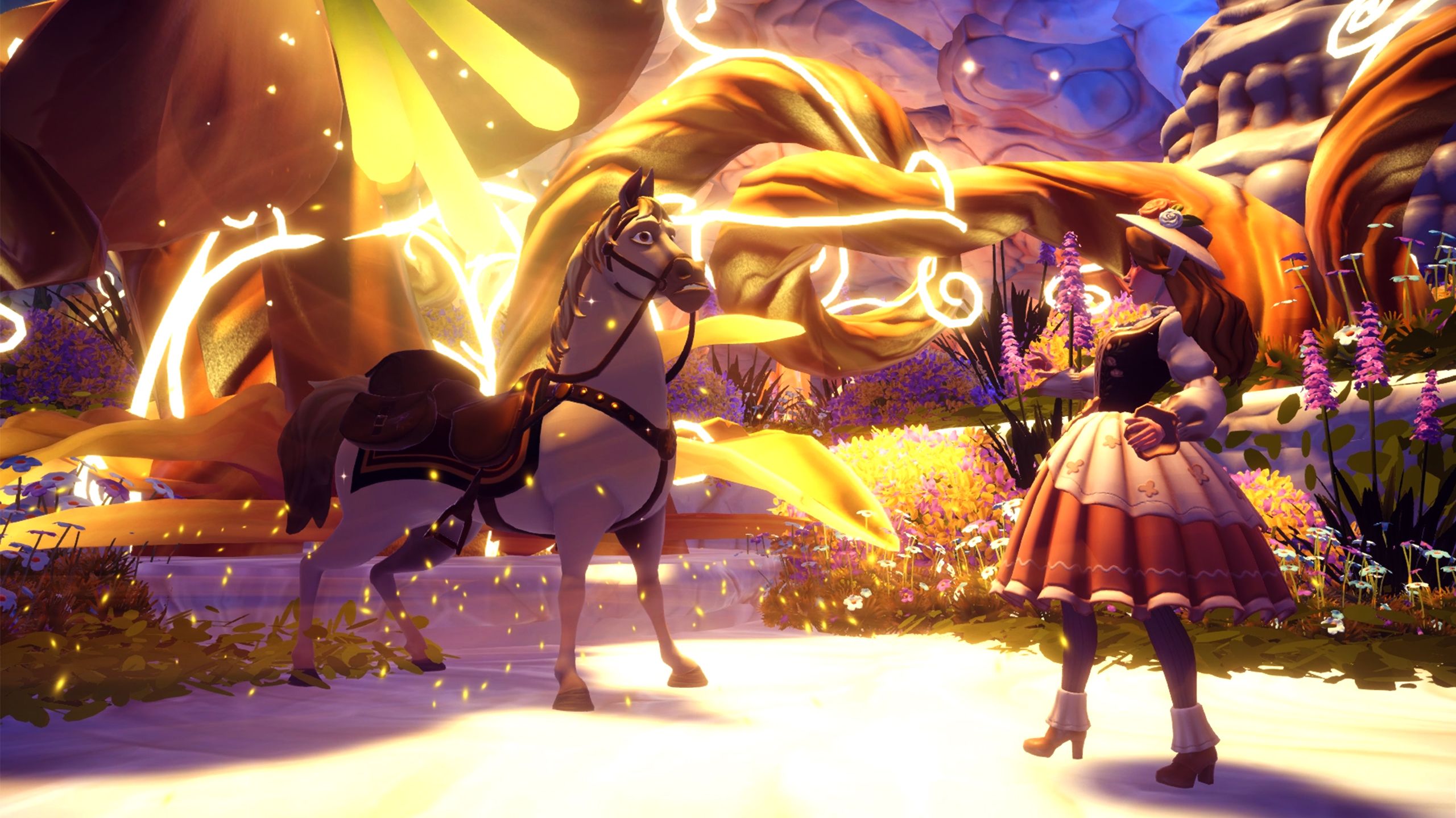 Once you’ve finished the three areas, talk to Hope Wishblossom again. She’ll give you a glowing orb that turns into Maximus, a horse you can ride to explore the Wishblossom Mountains. Each mount has unique skills, and Maximus is special because he can jump really far.