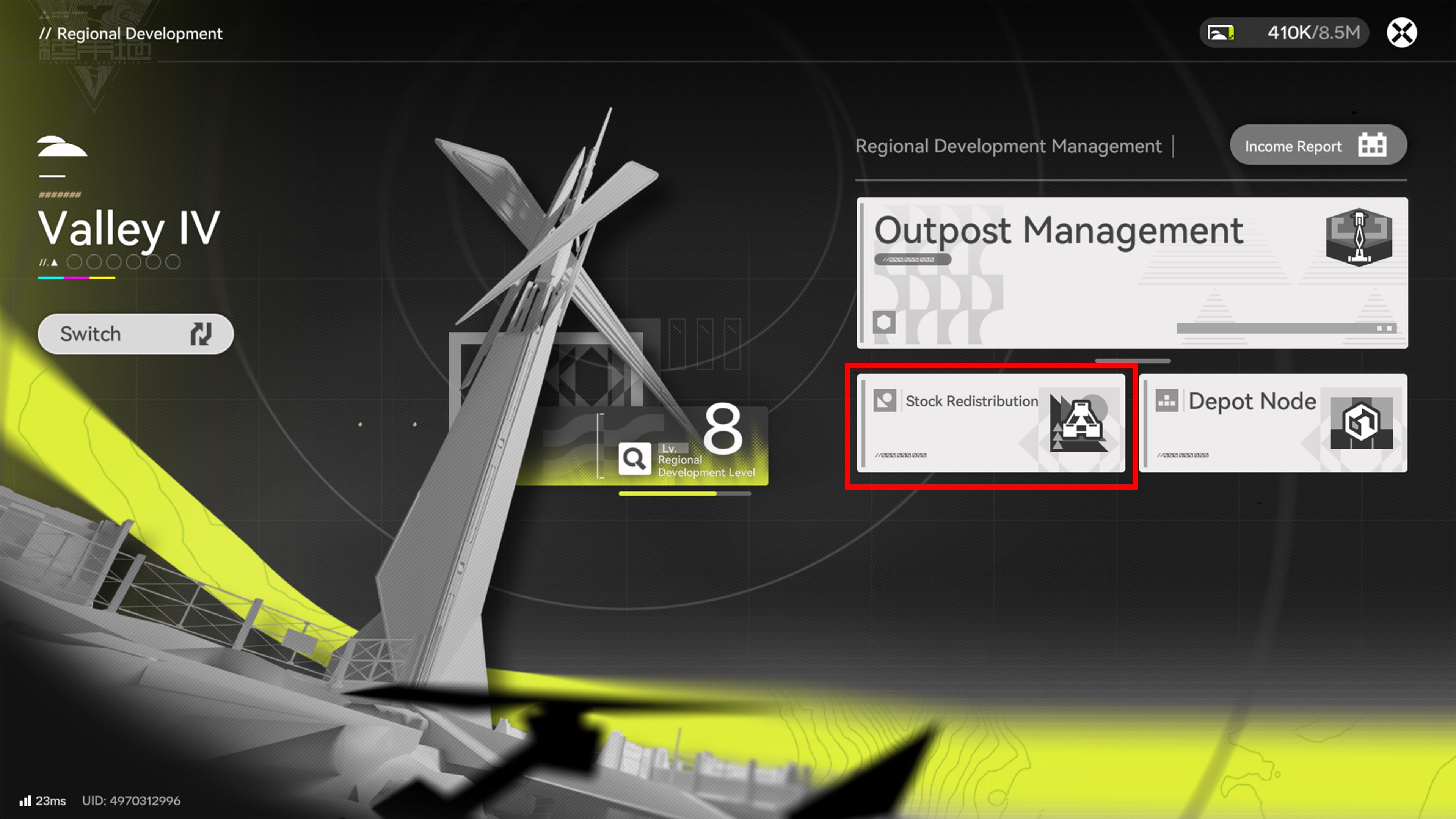 Within the Regional Development section, Arknights: Endfield players can manage their Stock Redistribution. Here, Endmins can purchase their daily limit of Elastic Goods and then sell them to earn additional Stock Bills.